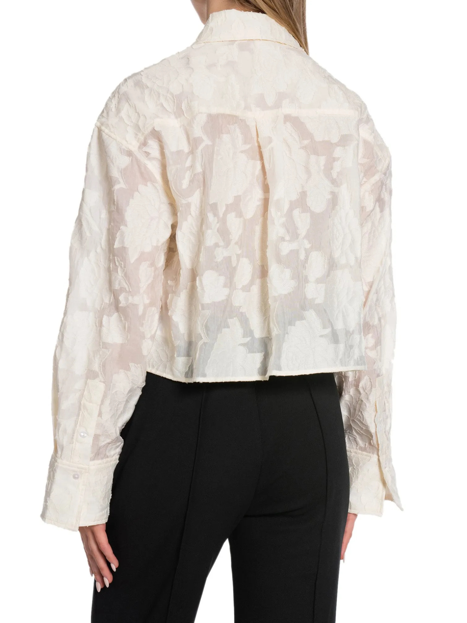 Shirt Idette frpm 2NDDAY. Lovely shirt in a creamy white color with decorative flowers sewn into the fabric.The shirt has a boxy and cropped fit. Style with suit pants for a festive look!
