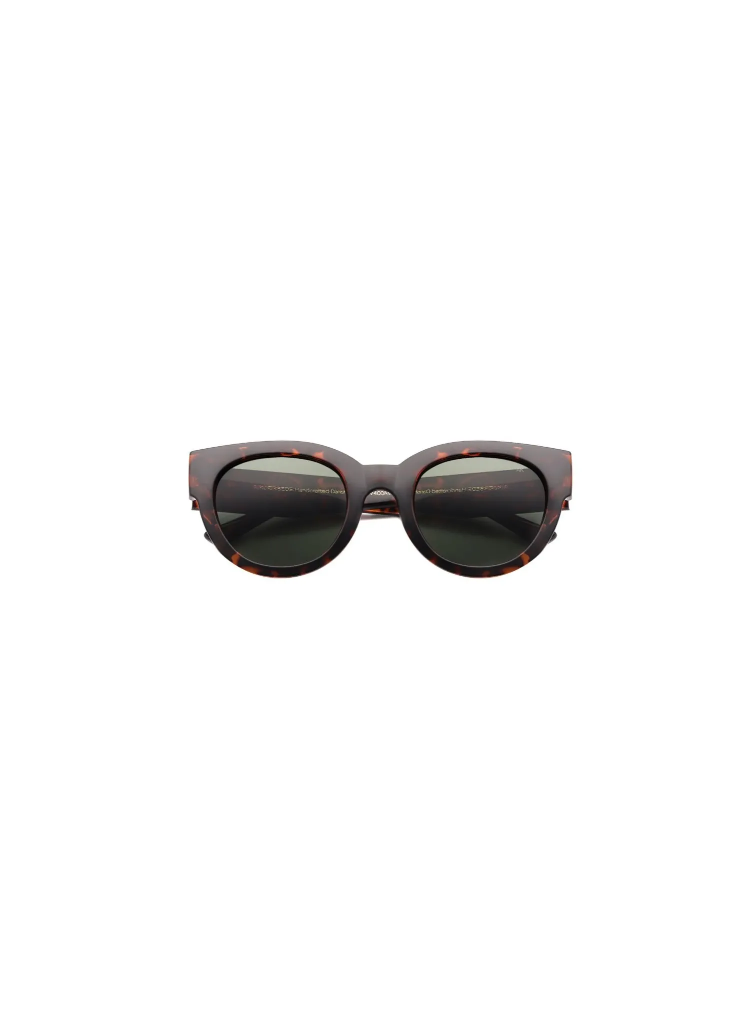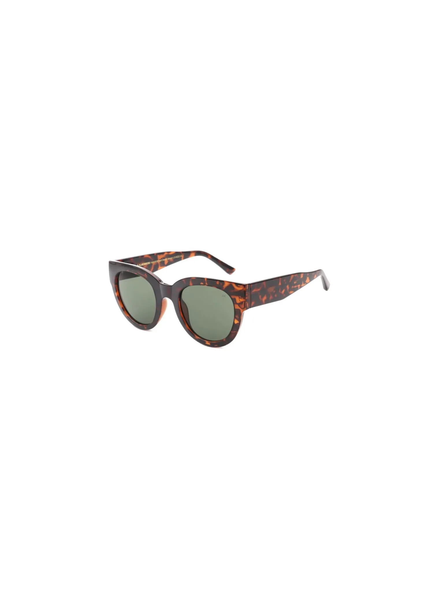 Lilly sunglasses from A.Kjaerbede. The color in Demi Tortoise is for you who love a big extravagant sunglasses. The frame is solid and the lenses, which have a green tone, provide optimal UV400 protection for your eyes.