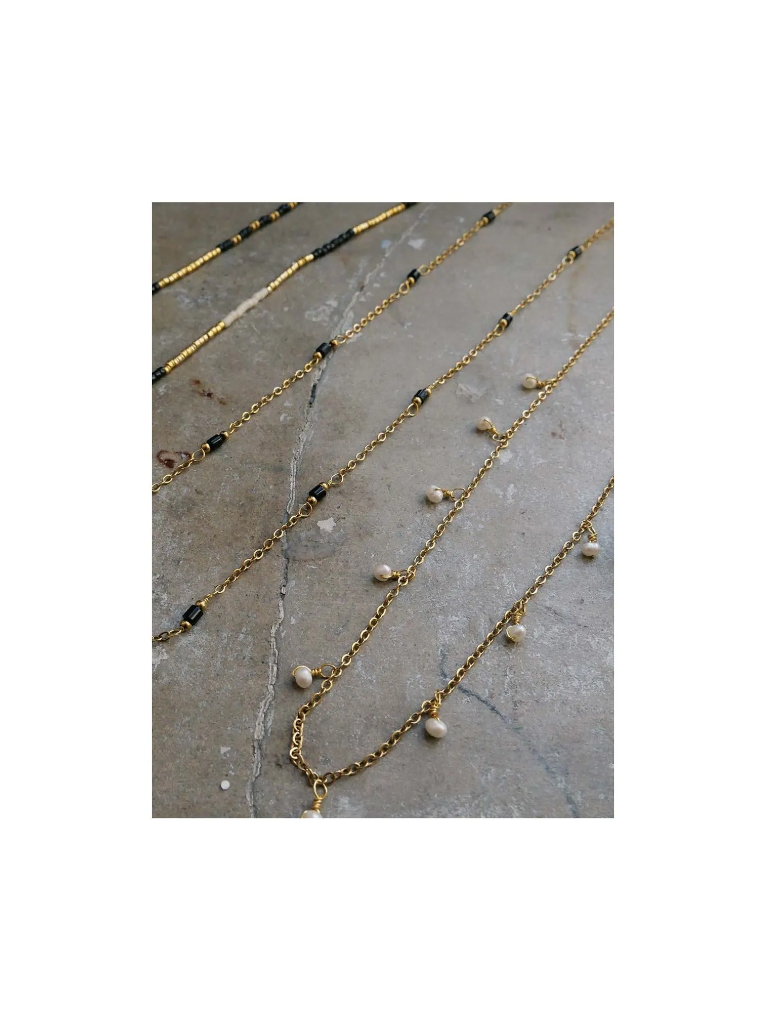 A&C OSLO NECKLACE W/DANGLING PEARLS STEEL 14K
