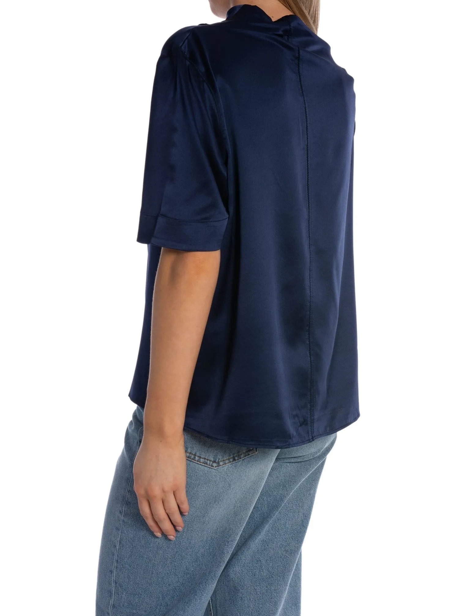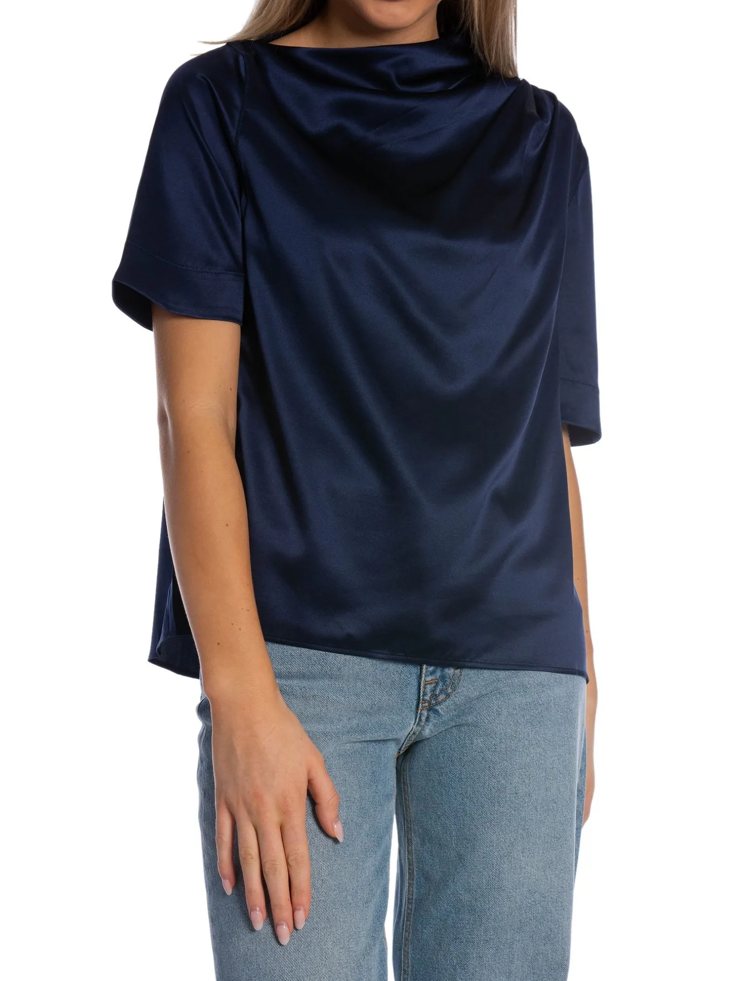 Top Lima from Ahlvar gallery. Stylish top with draping on one shoulder and embroidered detail along the back. Style with jeans or dress up with a skirt!