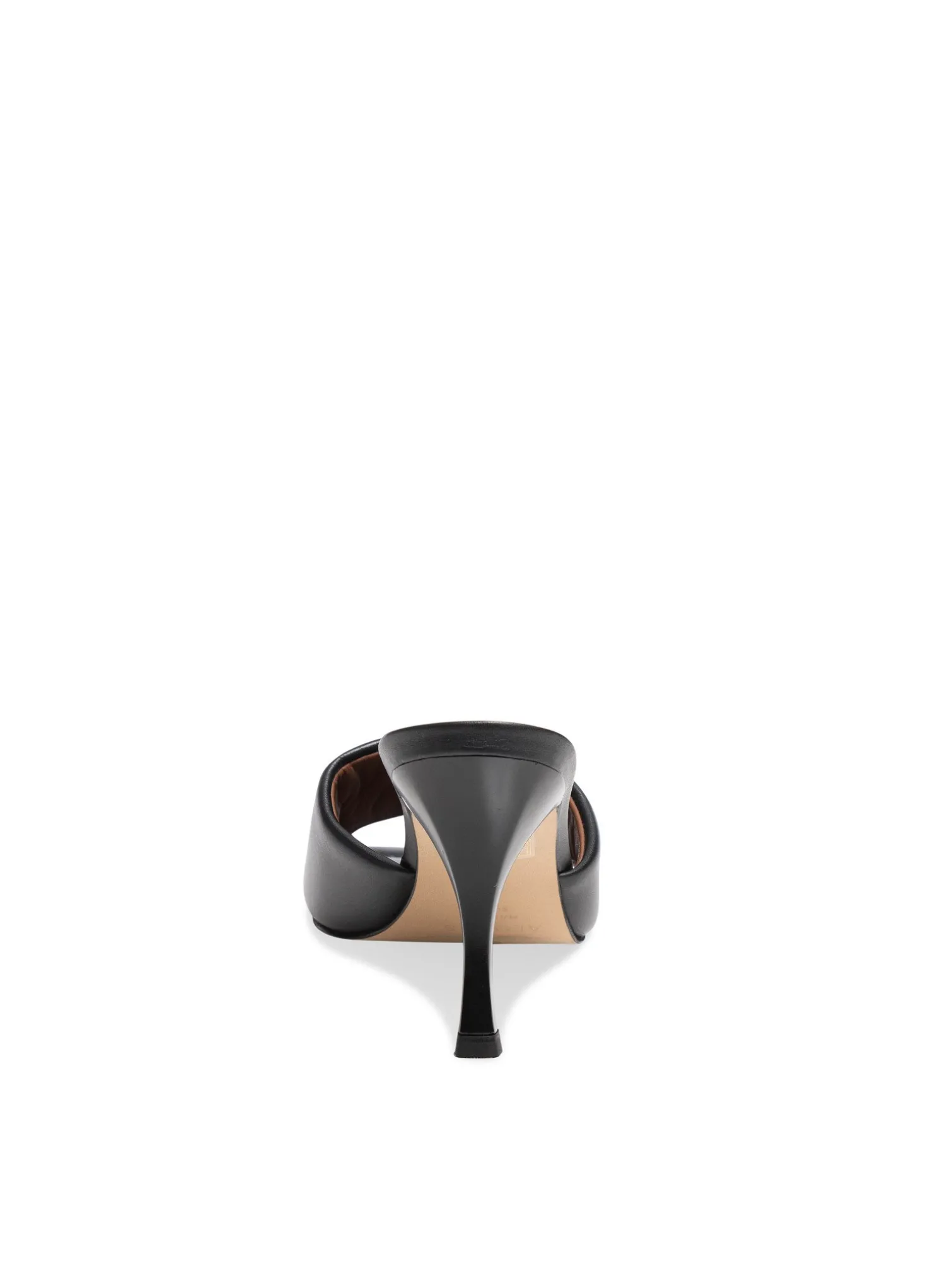 Sandal from Alohas. Sandal in black leather, padded sole and square toe. Narrow heel.