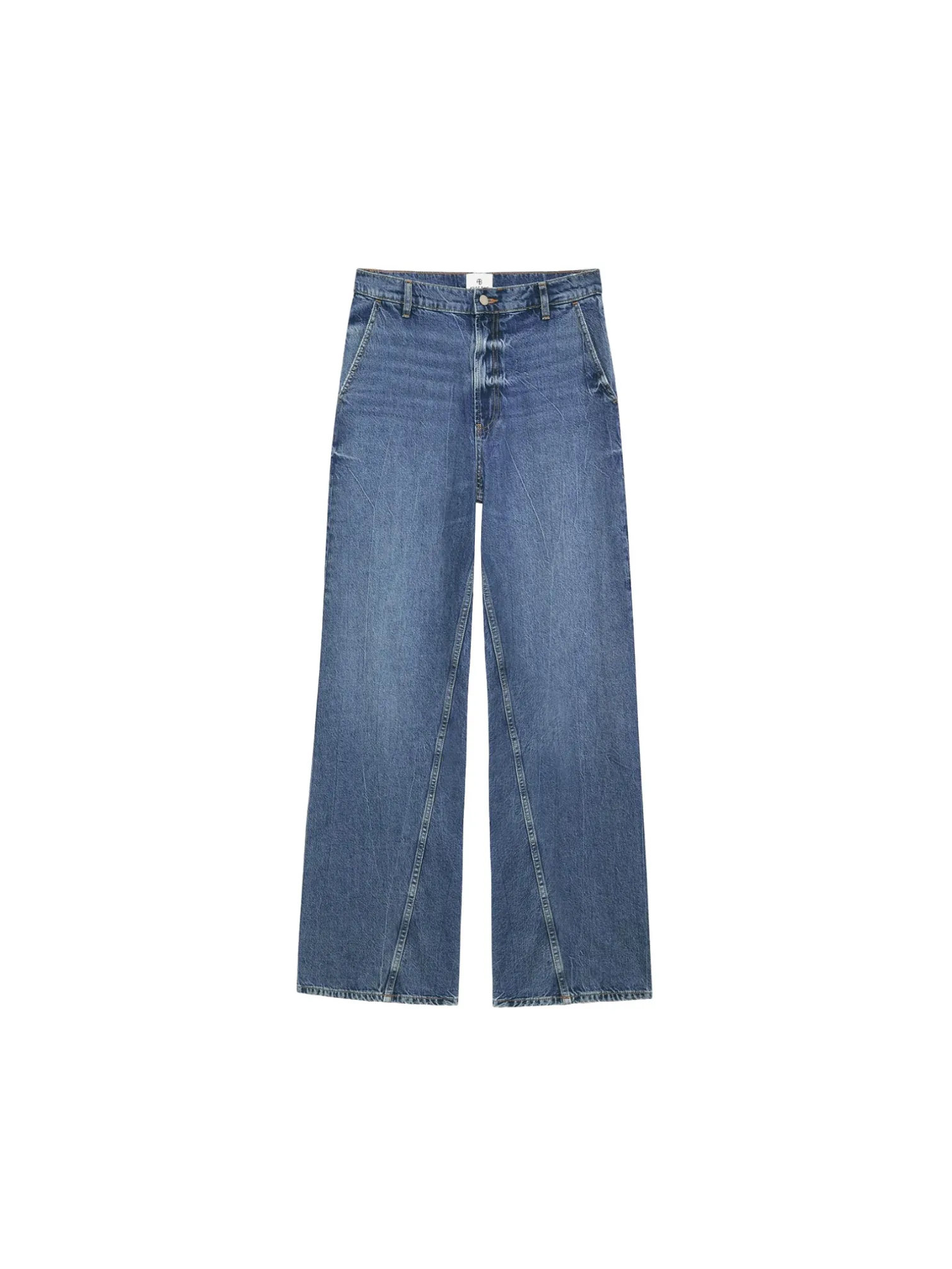 Jeans Briley from Anine Bing. A pair of straight wide leg jeans with a stylish vertical seam at the front. A pair of luxurious denim that is just as nice to wear with a sweatshirt as it is to dress up with a top and blazer. The jeans have a high waist in an oversize fit, can be worn low on the hip if you go up a size.