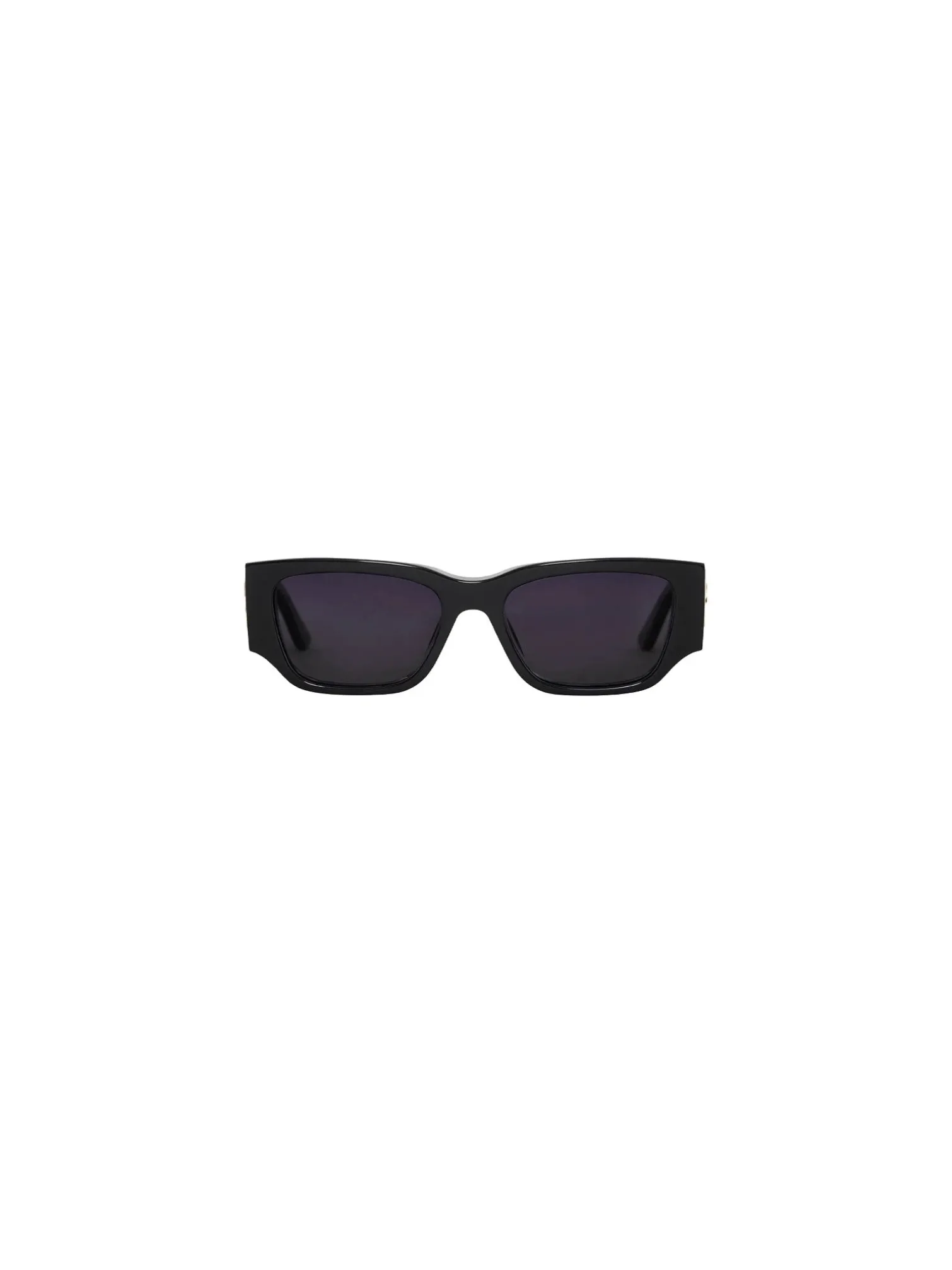 Sunglasses Bowery from Anine Bing. A pair of stylish and trendy sunglasses with a slightly narrower fit. Black frames with dark tinted glass. Logo at sides of frames.