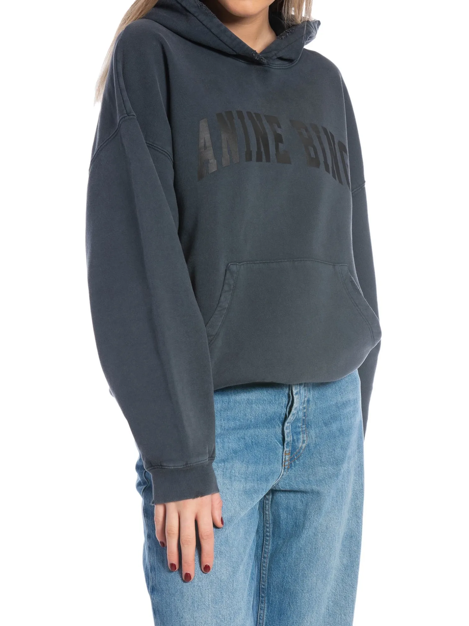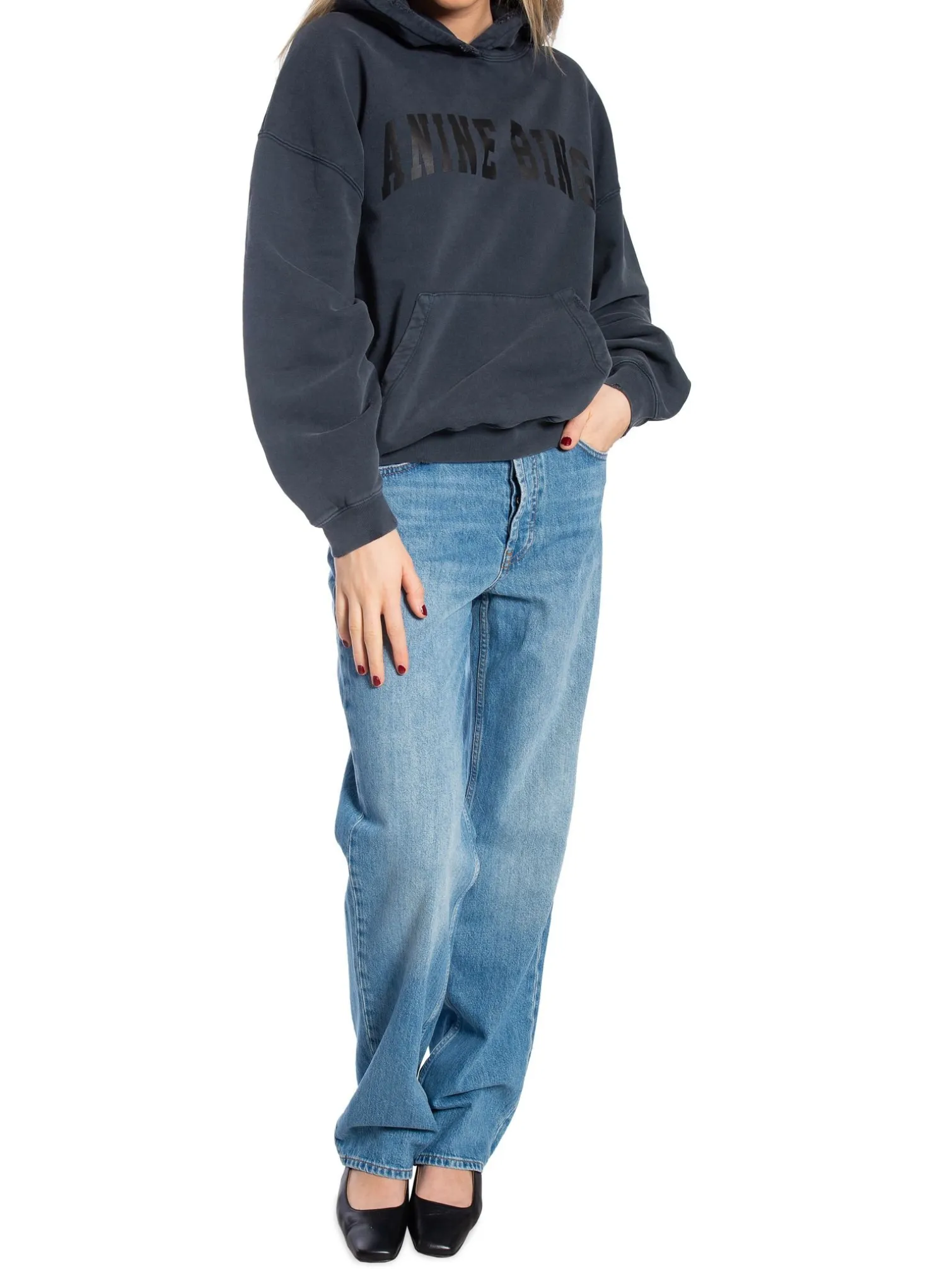Harvey sweatshirt from Anine Bing. A super stylish hoodie with the brand’s classic logo. Straight and slightly longer fit with dropped shoulders. A spacious pocket with opening from both sides. The perfect sweater for all sports activities!