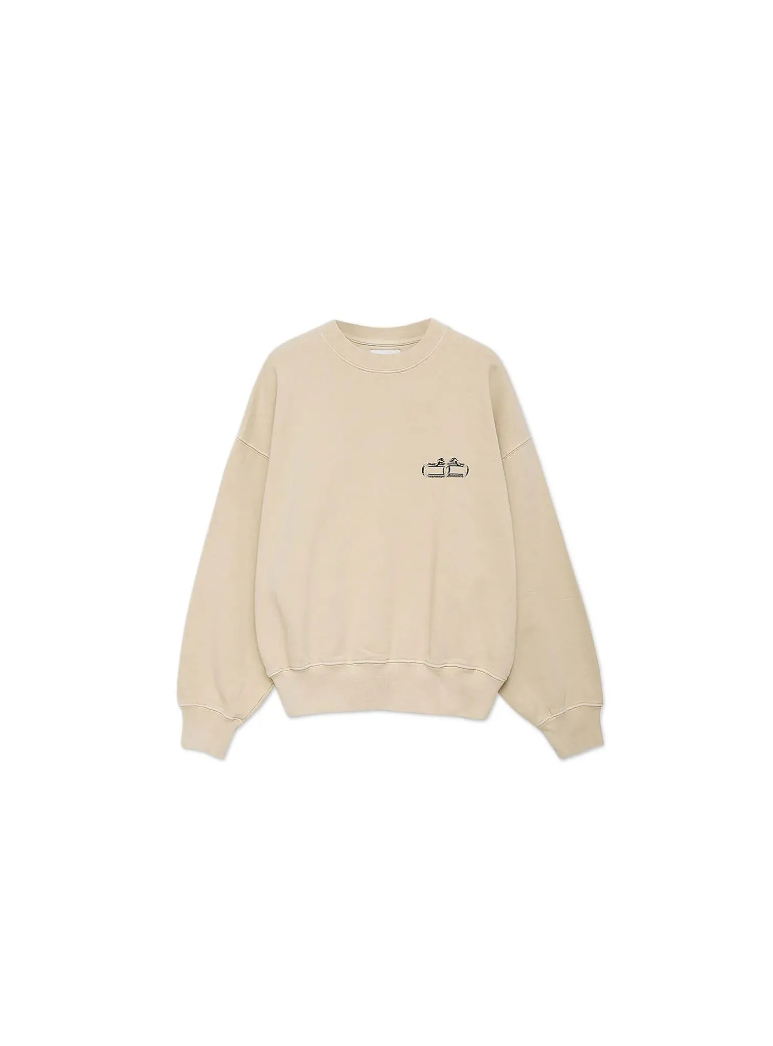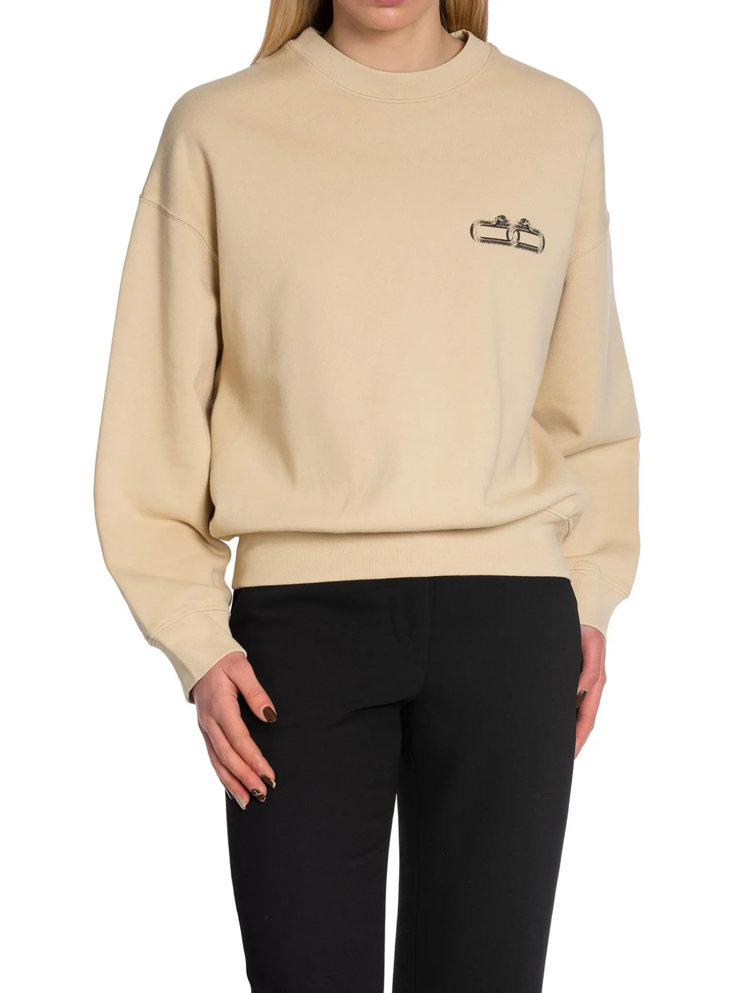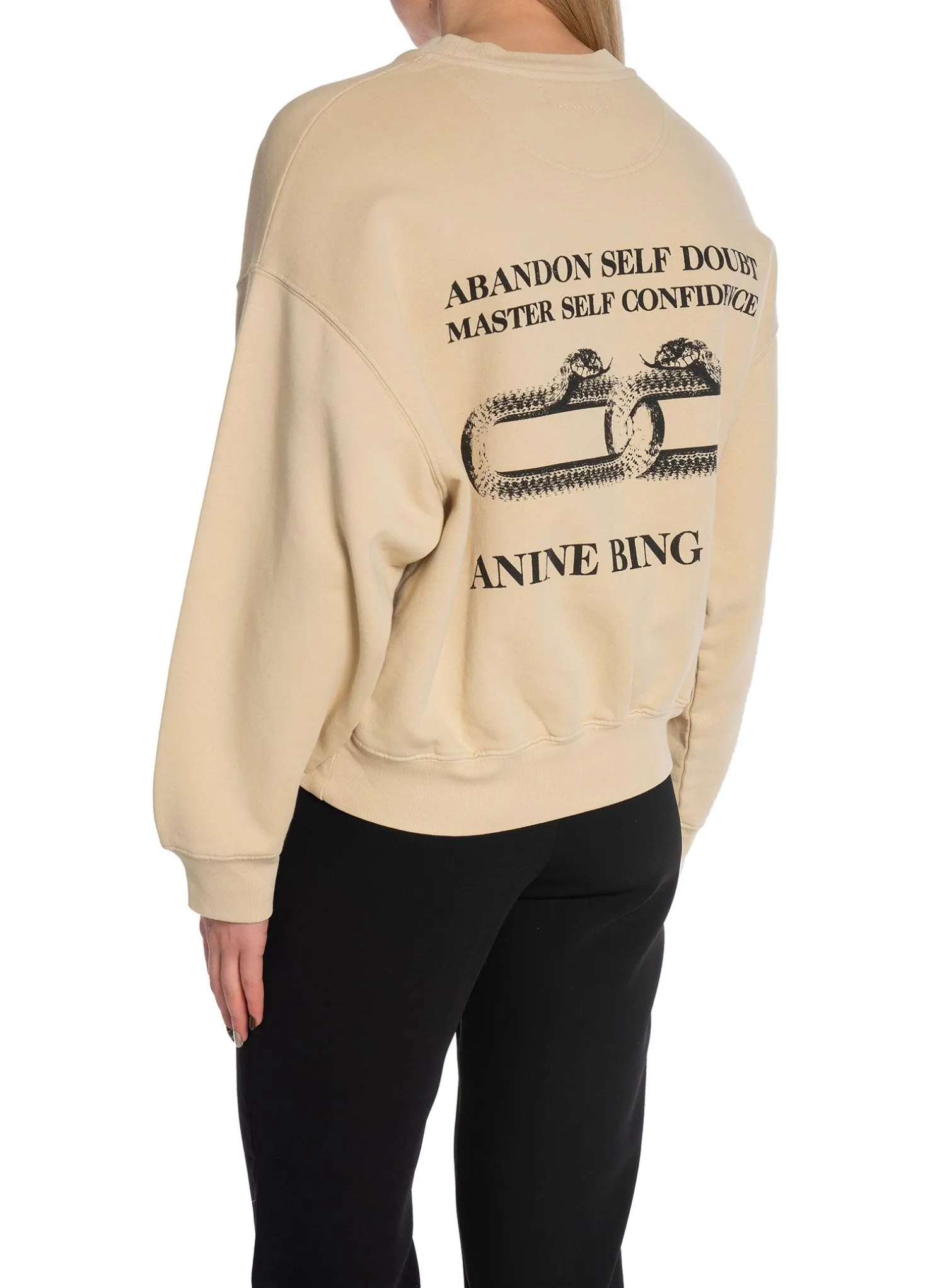 Sweater Leo from Anine Bing. A beige sweatshirt with decorative details in the form of text and prints in black shades. Round neck and cuffs at the end of the arms.