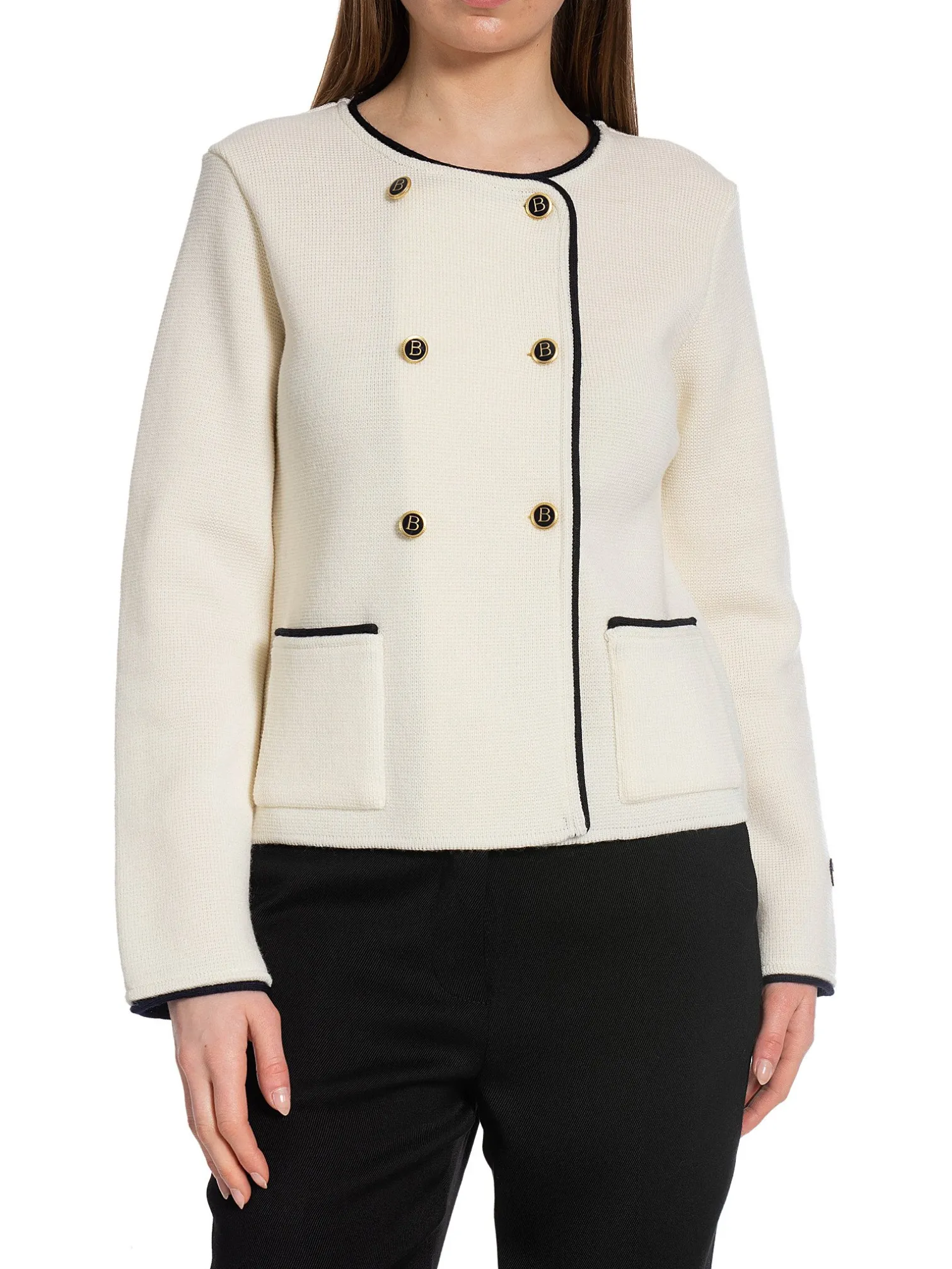 Jacket Marita from Busnel. The luxurious garment for all occasions. Cut in a feminine shape, it is detailed with six buttons and two patch pockets. Wear this as a jacket or blazer.