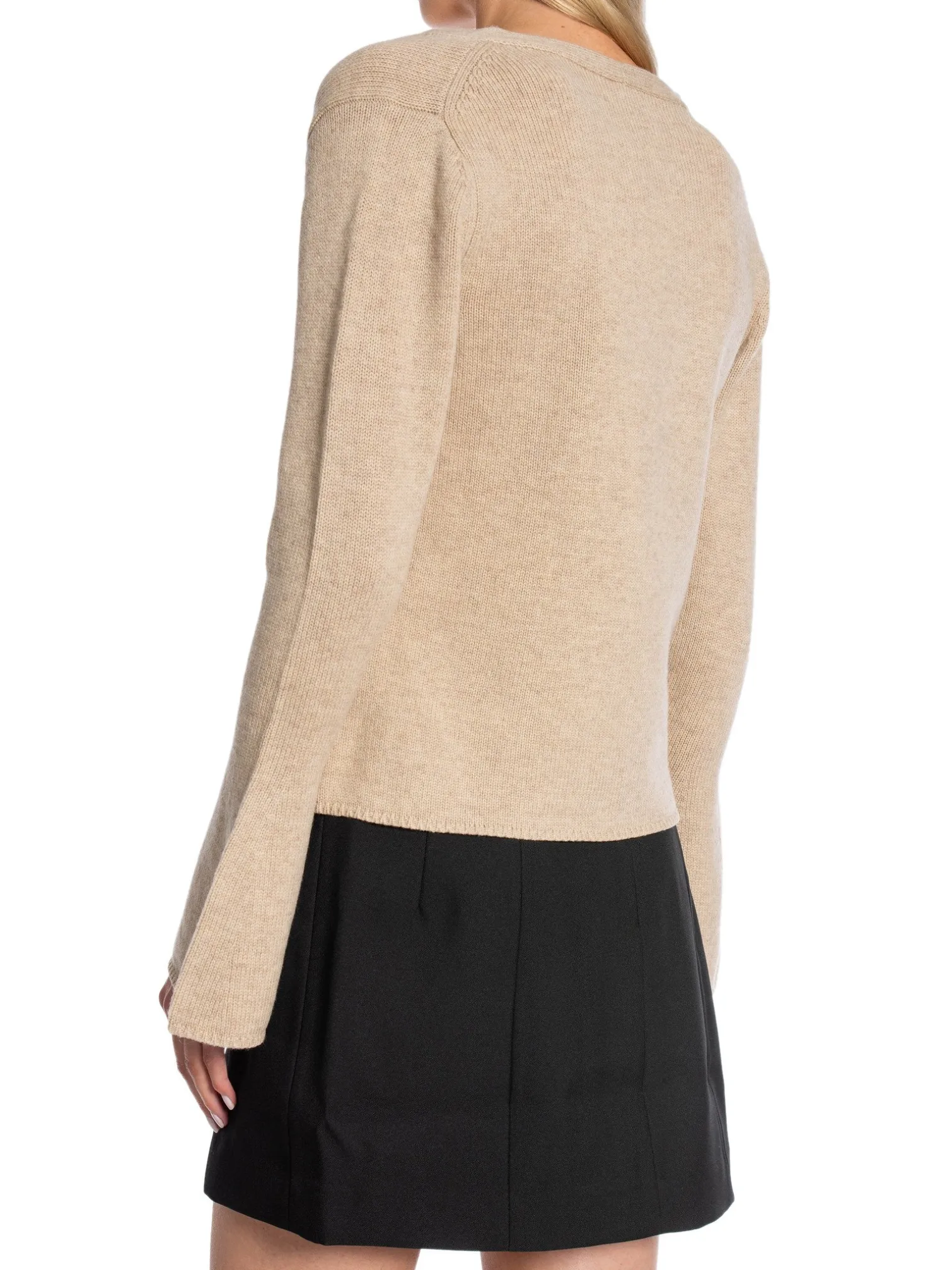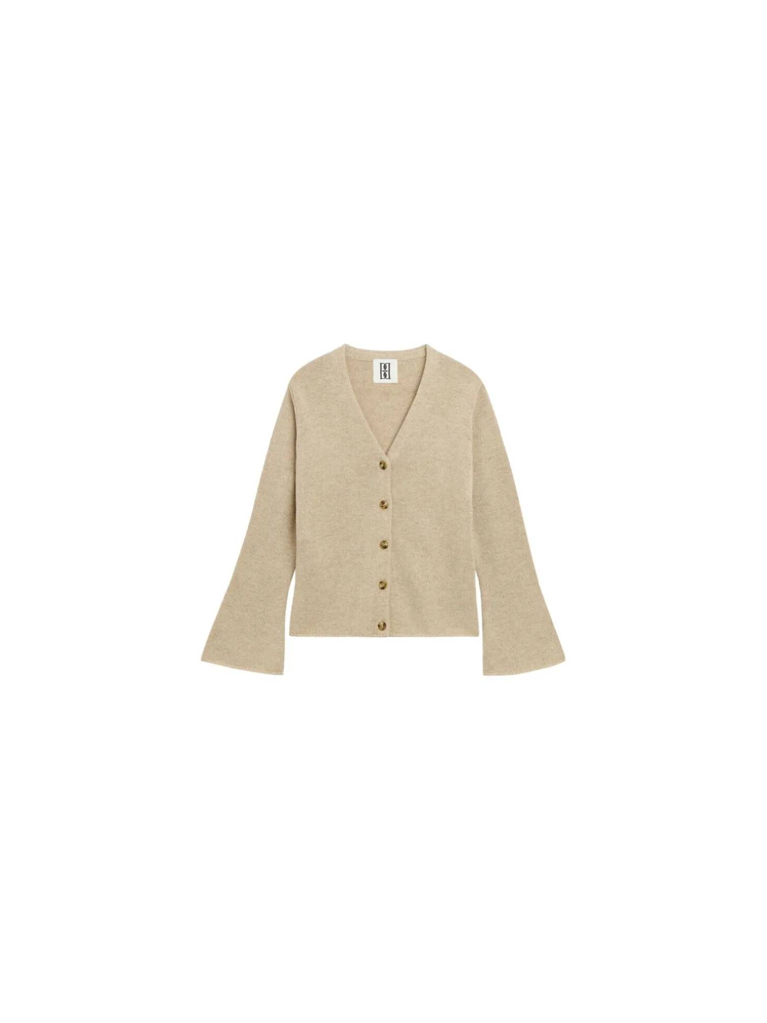 Cardigan Cirane from By Malene Birger. A soft cardigan in 100% wool material with wide sleeves at the end. The cardigan has beautiful brown buttons at the front. Perfect to wear during late summer nights.