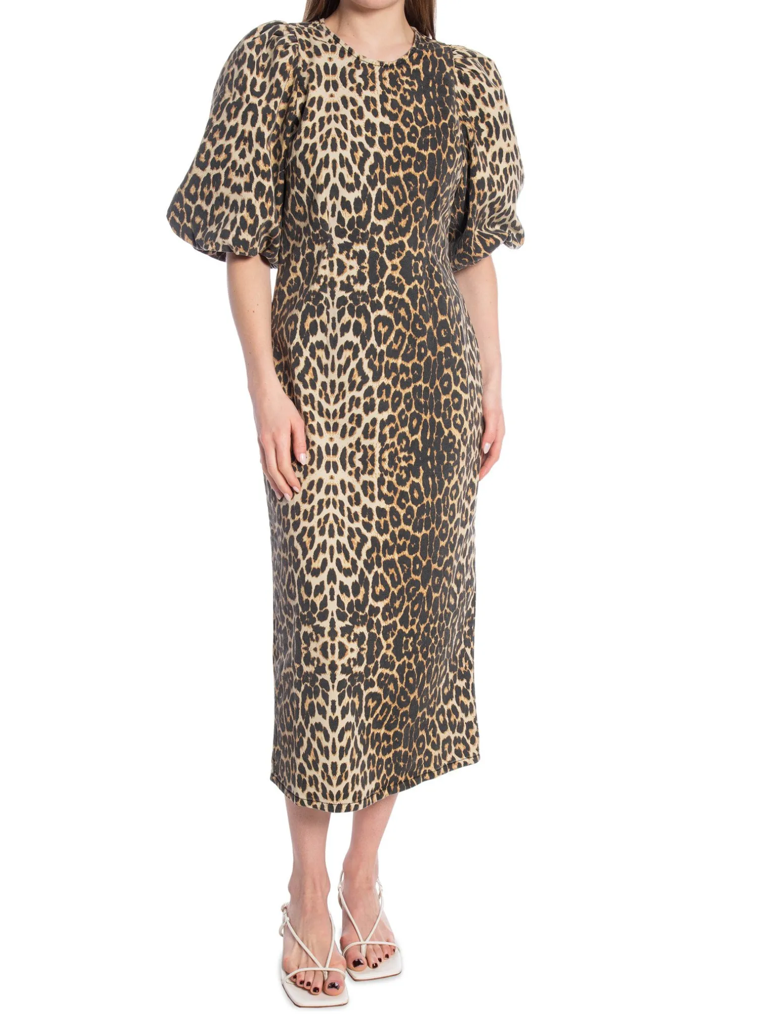 Dress Leo Puff from Co’couture. A lovely dress in leo with puff sleeves and a figure-hugging fit. Closes with a zipper at the back.