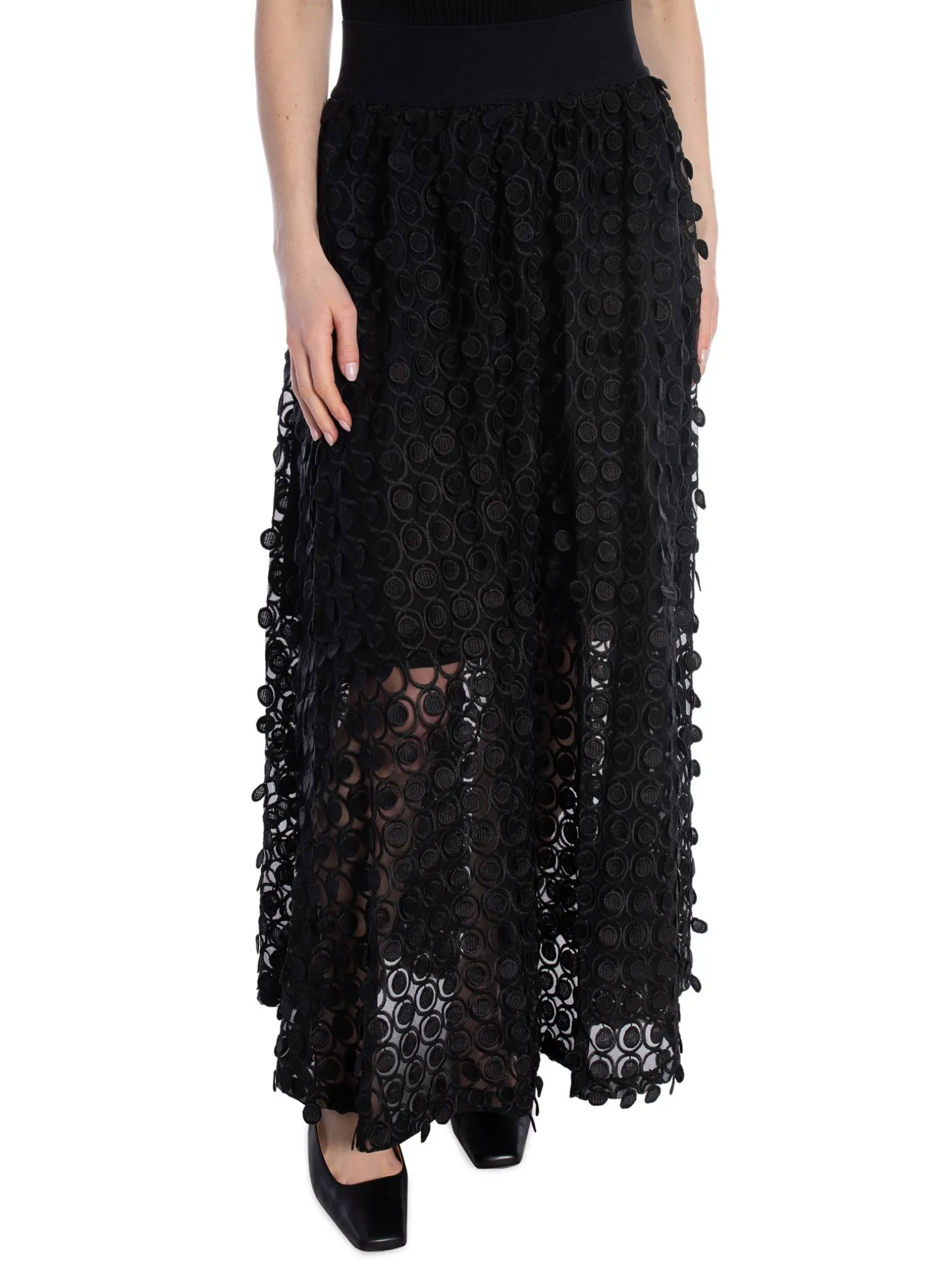 Skirt Believe from Copenhagen Muse. A nice long skirt with a short petticoat. Designed with 3D lace material and a thick elastic waistband. Style with a tucked-in oversized t-shirt for a more casual but cool look!