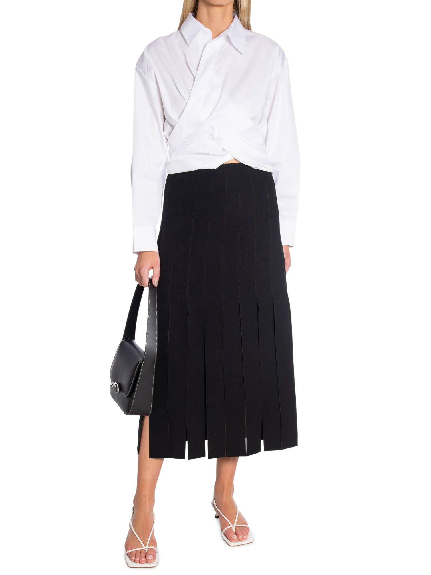 Skirt Tailor from Copenhagen Muse. A stylish and unique skirt with long fringes that together form the lower part of the skirt. The skirt has a straight fit and a hidden zipper on the side.