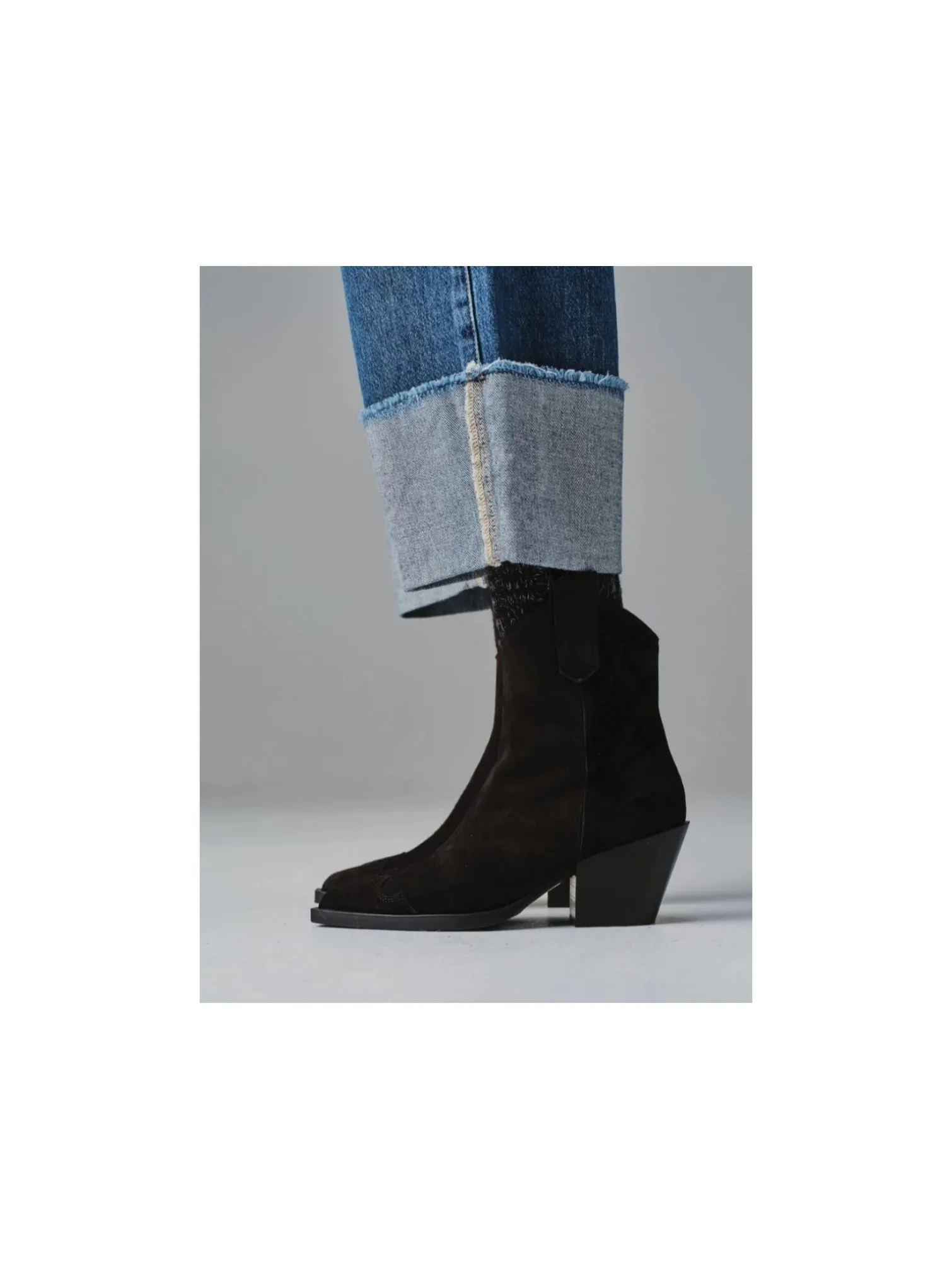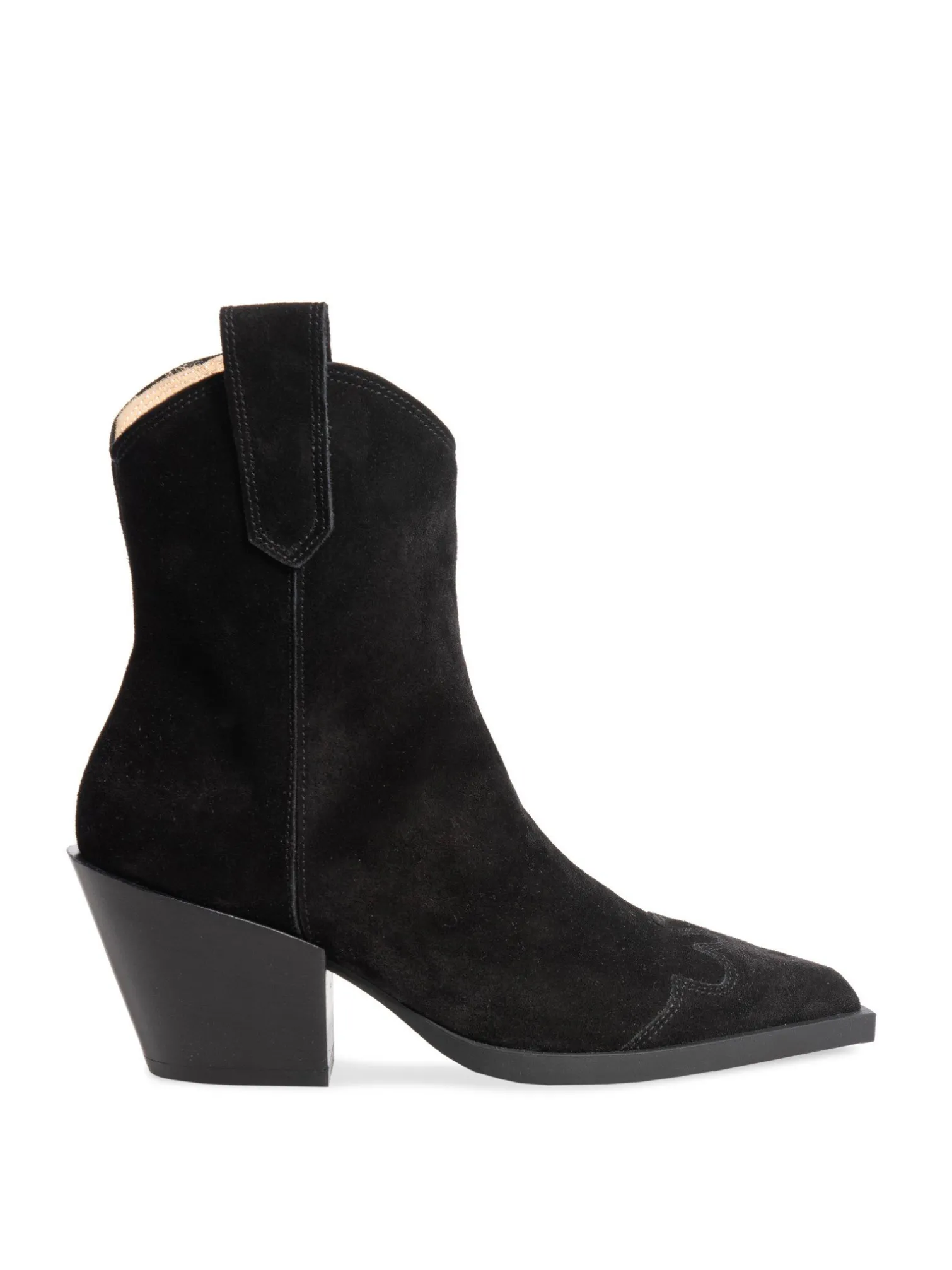 Boots CPH238 from Copenhagen Studios. A pair of ankle boots in cowboy inspiration made in soft suede. Designed with embroidered details at front.