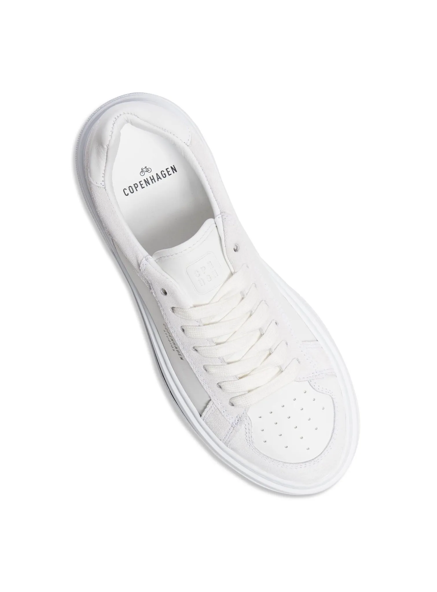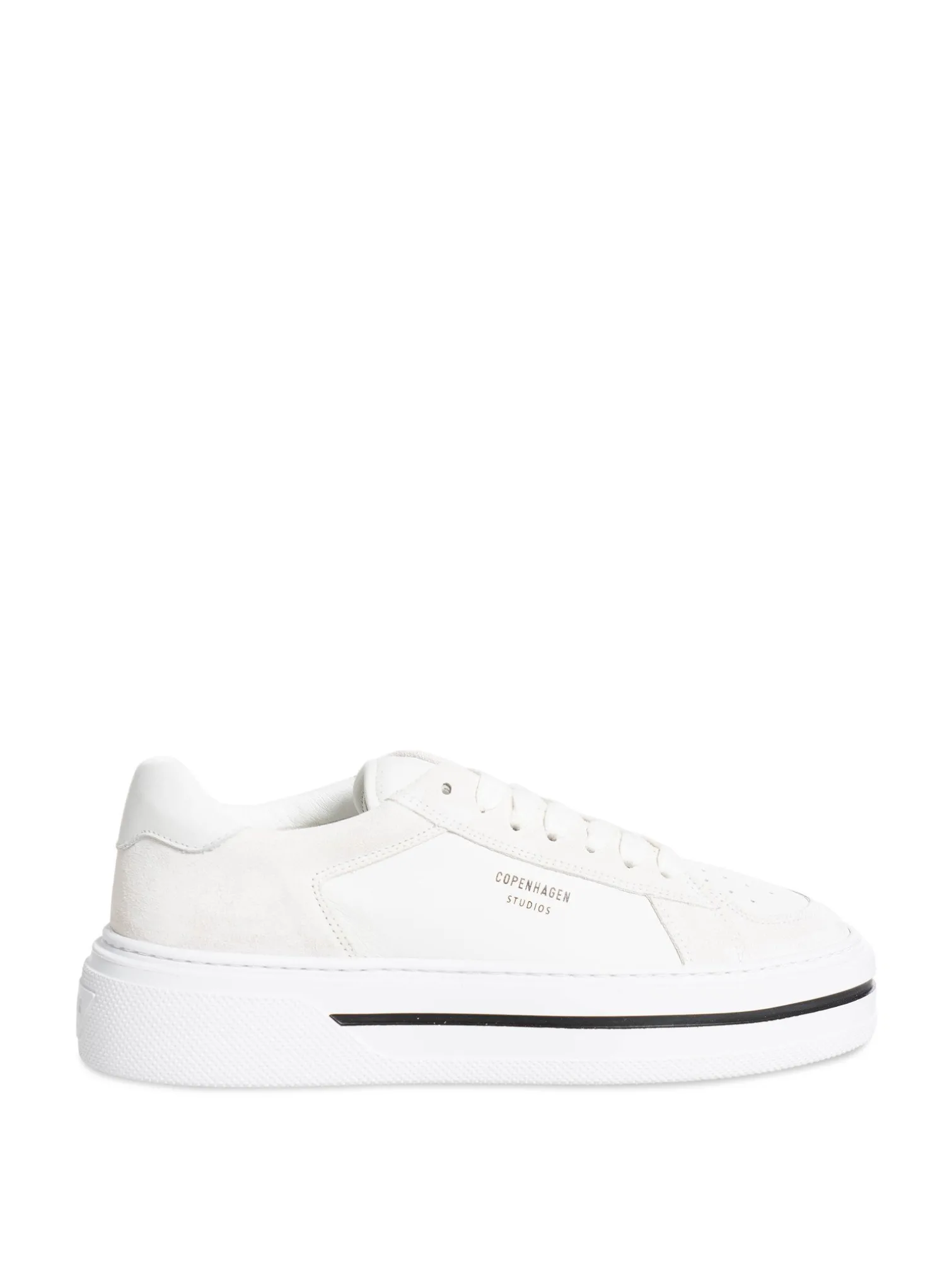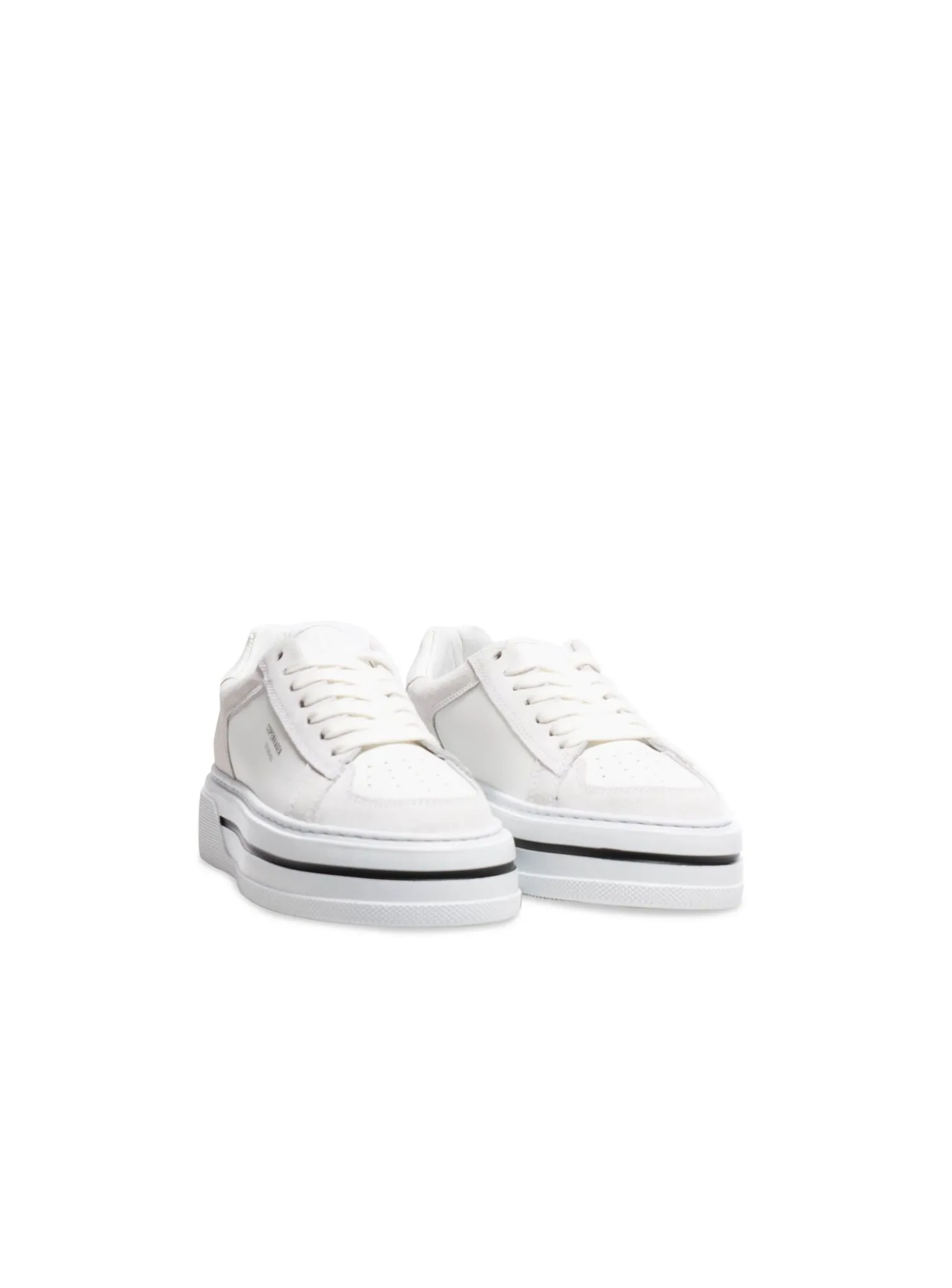 Sneakers Leather mix white from Copenhagen Studios. A pair of classic sneakers with updated details such a contrasting stripe in the sole and stylish suede details. Classic tie at the top. The shoe is made in leather, even the inside is in leather with complementing soft frotté.