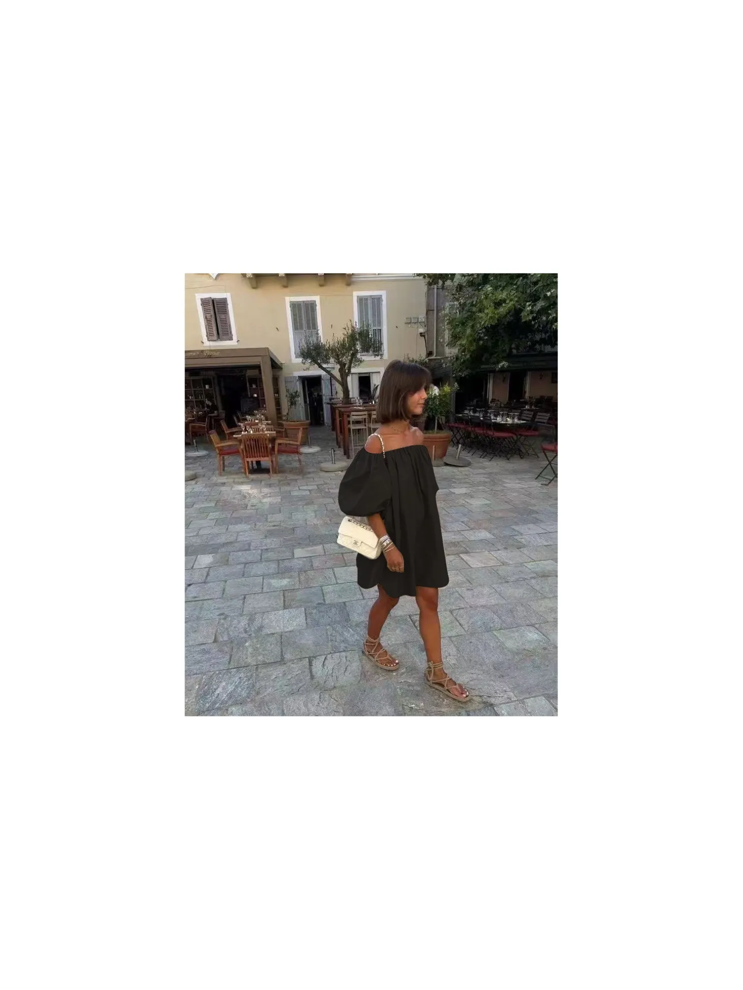 Dress from Copperose. A beautiful dress that can be worn off the shoulders in a mini length. Wear with a pair of sandals or heels for a nice summer look!
