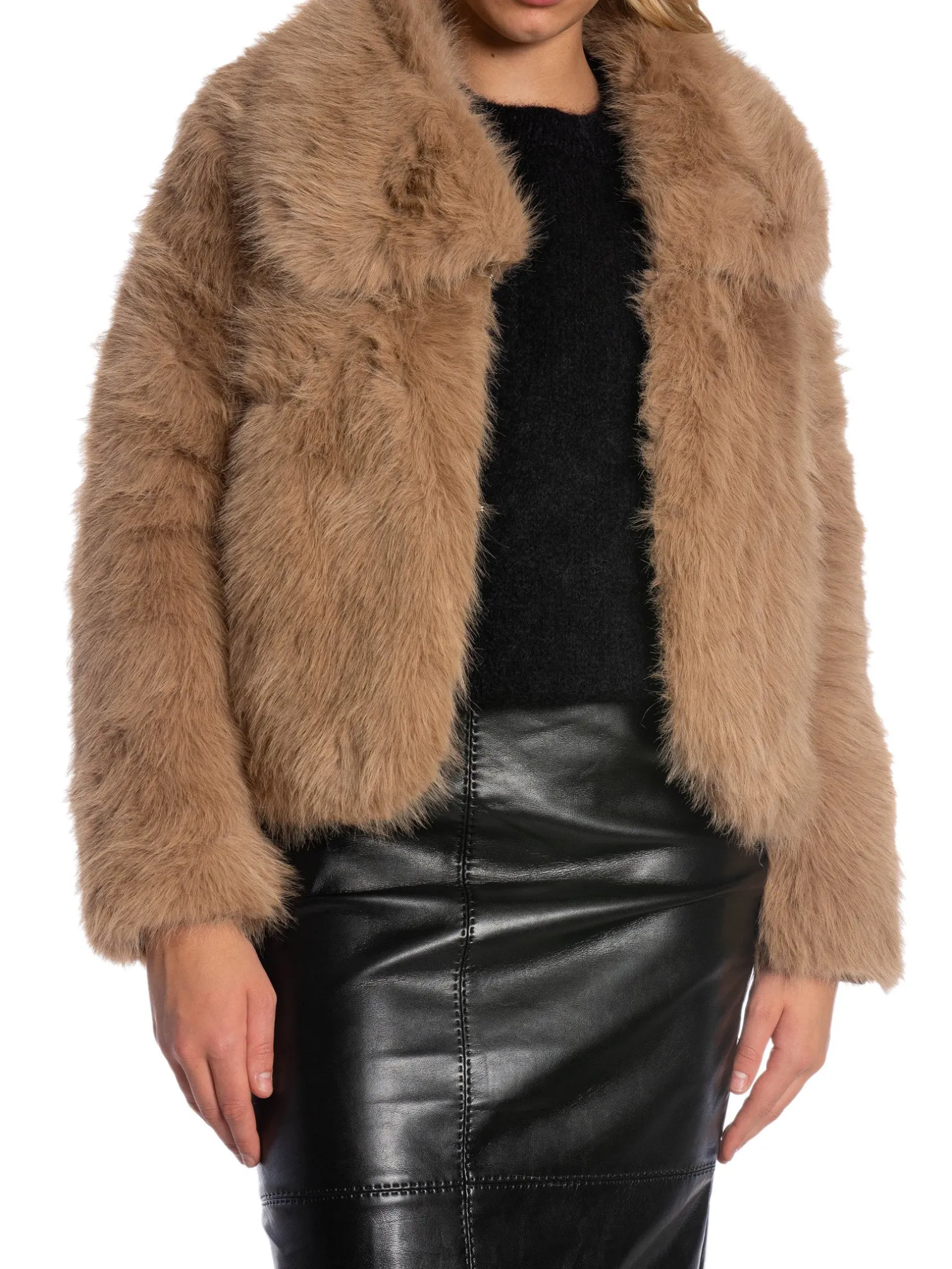 Jacket Camel from Copperrose. A luxurious autumn jacket in faux fur, comes in two lovely shades of beige. Designed in a short model with a wide collar, fastens with hidden hooks. Perfect to wear with a skirt with a pair of boots!