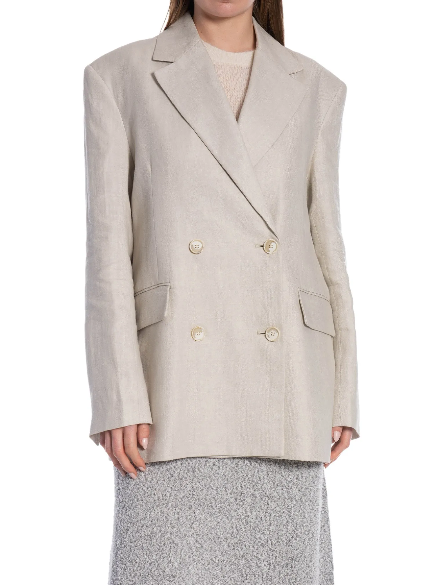 Classic Linen jacket from Dagmar. A timeless and versatile blazer in linen fabric. Structured tailored style, cut to a double-breasted silhouette. Designed with flap pockets at the front, lightly padded shoulders and vents at the back. Fully lined. Use over your favorite look from your wardrobe!