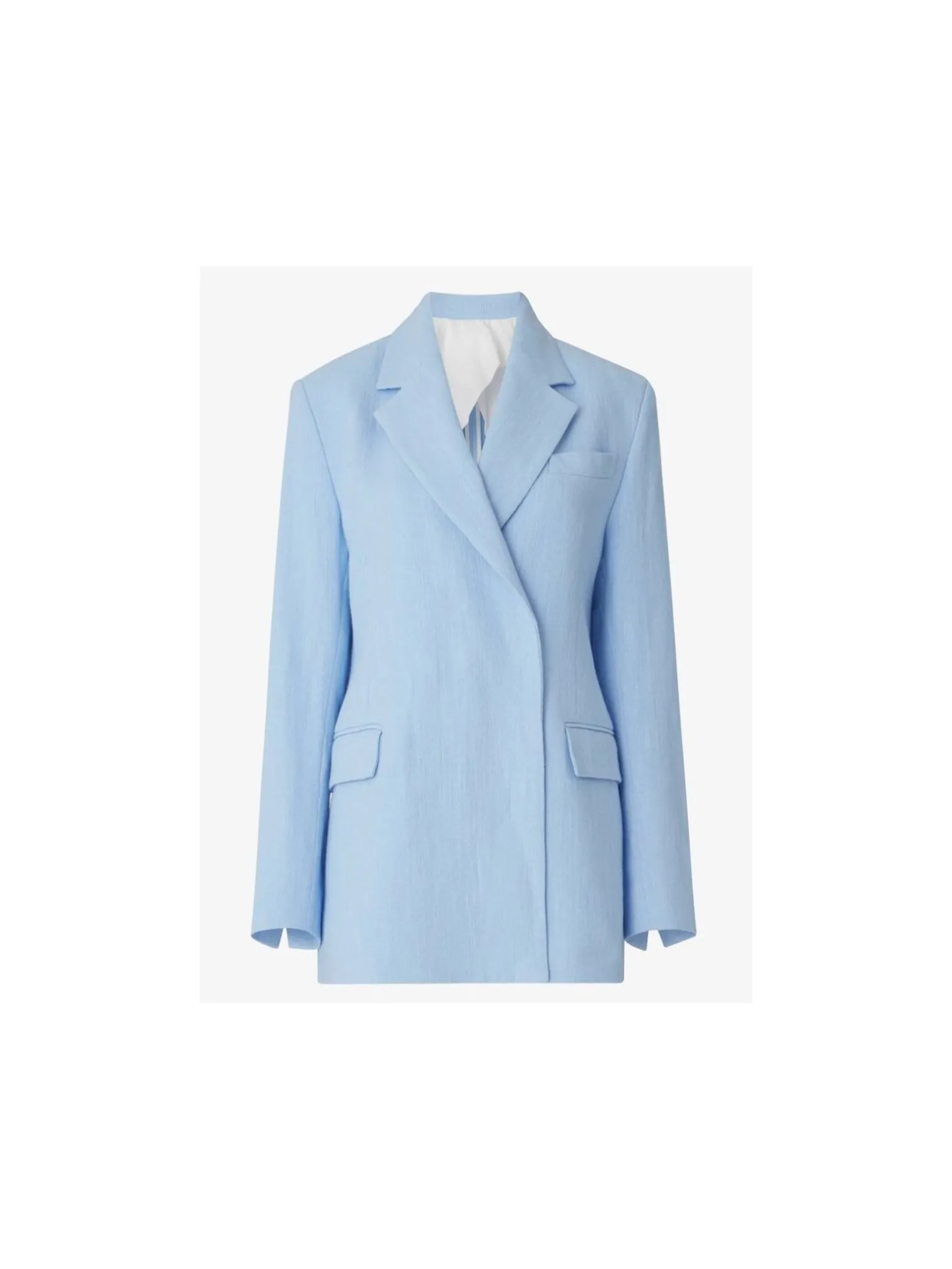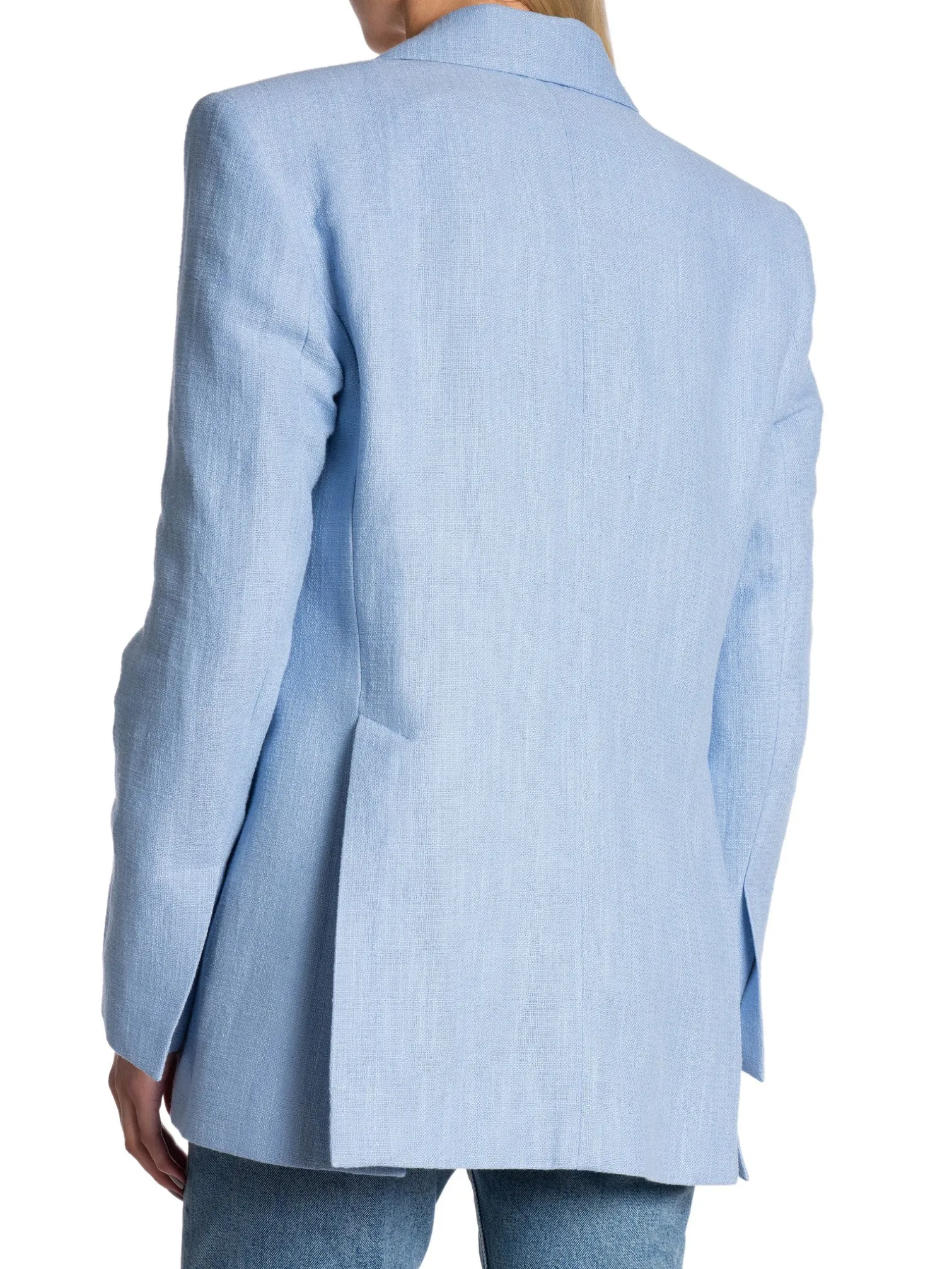 Blazer Classic from Dagmar. A beautiful timeless linen blazer in light blue. A straight fit with padded shoulders. Hidden buttons and pockets with lid at the front.