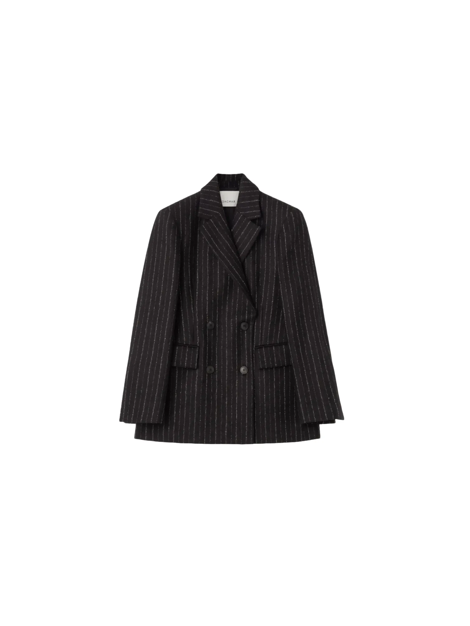 Blazer Pinstripe from Dagmar. Trendy pinstripe blazer with boucle knitted stripes in wool. Double breasted blazer with two front pockets, shoulder pads and inner pocket. Style with slim jeans and a shirt for a fresh autumn look!