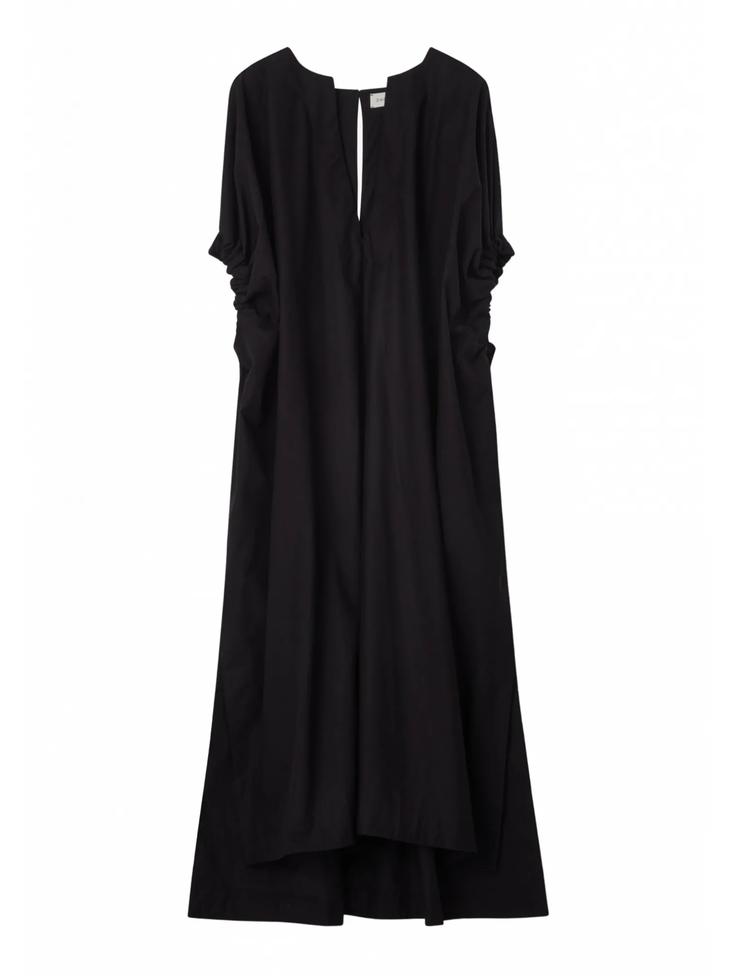 Dress Rouched from Dagmar. A stylish dress made of organic cotton, designed in a relaxed fit with a voluminous silhouette. The dress features a deep V-neckline, gathered sleeves, side pockets and side slits. Style together with a pair of sneakers for a simple yet stylish everyday look!