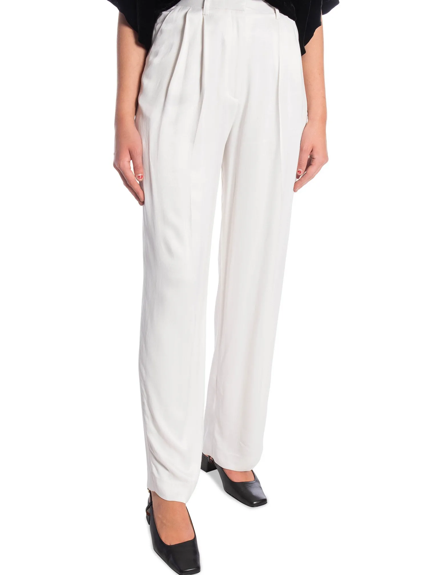 Trousers Wide Suit from Dagmar. A thinner pair of trousers in shimmering material. It is viscose but the feel is satin-like. Designed with stylish folds and pockets. Perfect to match with a blazer!