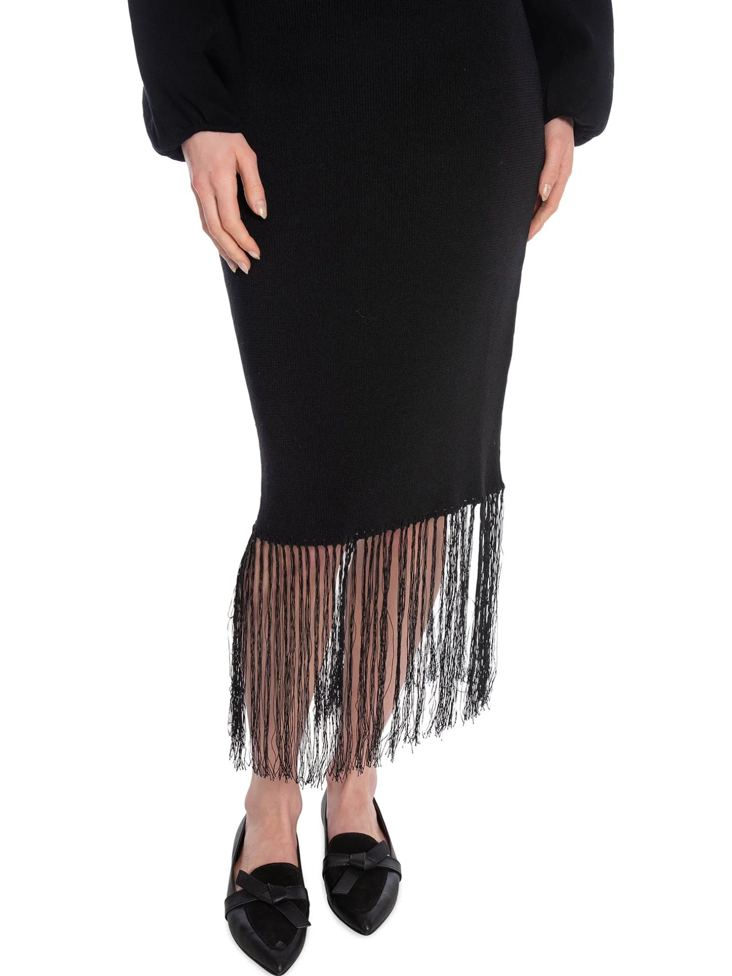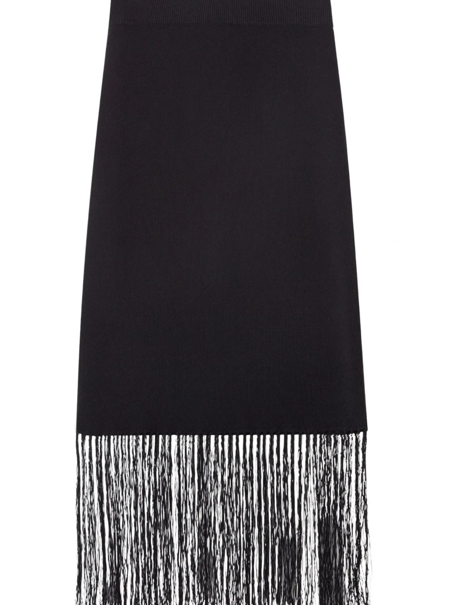 Skirt Fringe from Dagmar. A nice knitted skirt in a soft cotton blend in a figure-hugging fit with a midi length. The skirt is designed with long fringes along the edge. Style with a tucked-in, oversized t-shirt for a cool look!
