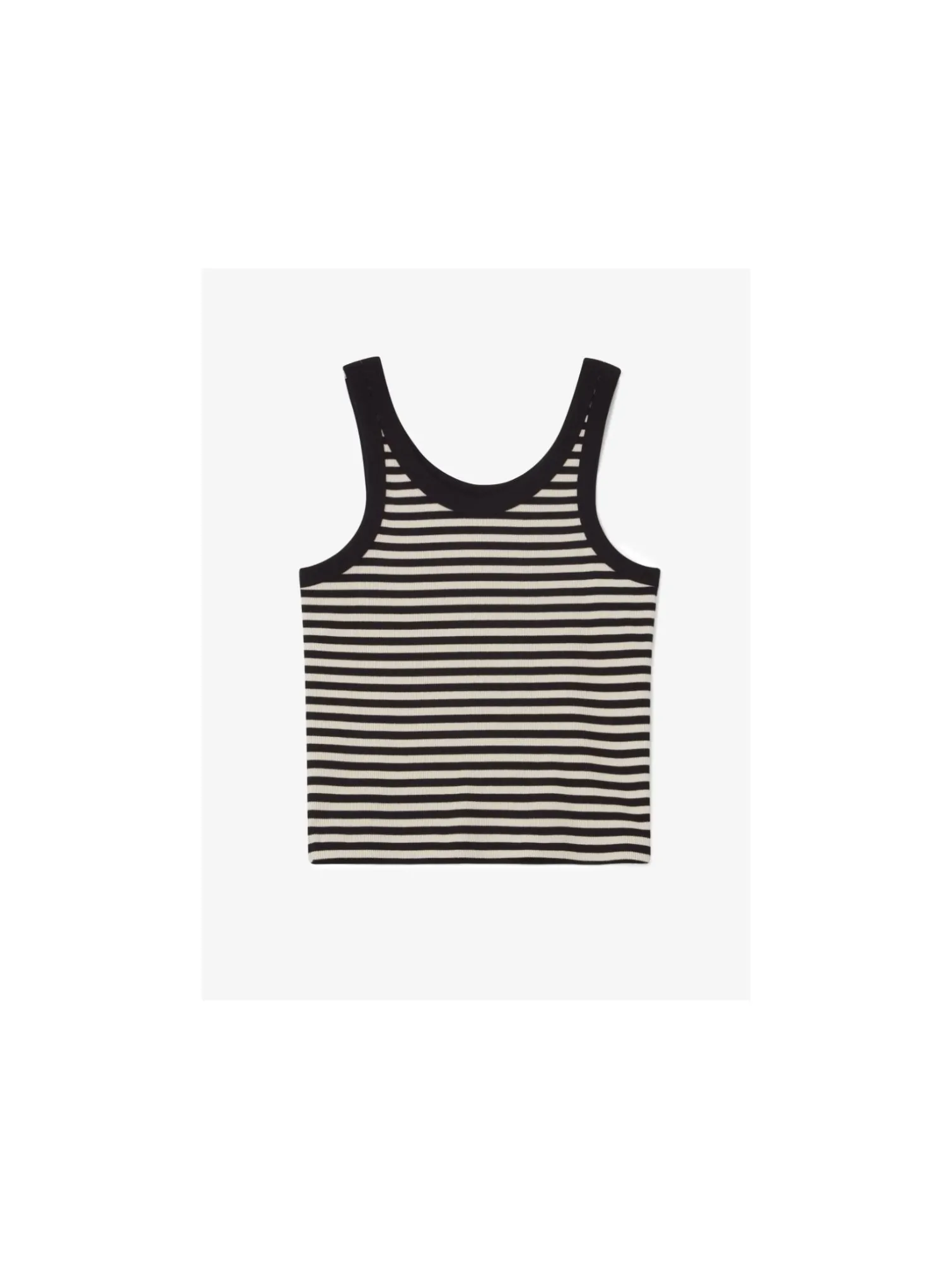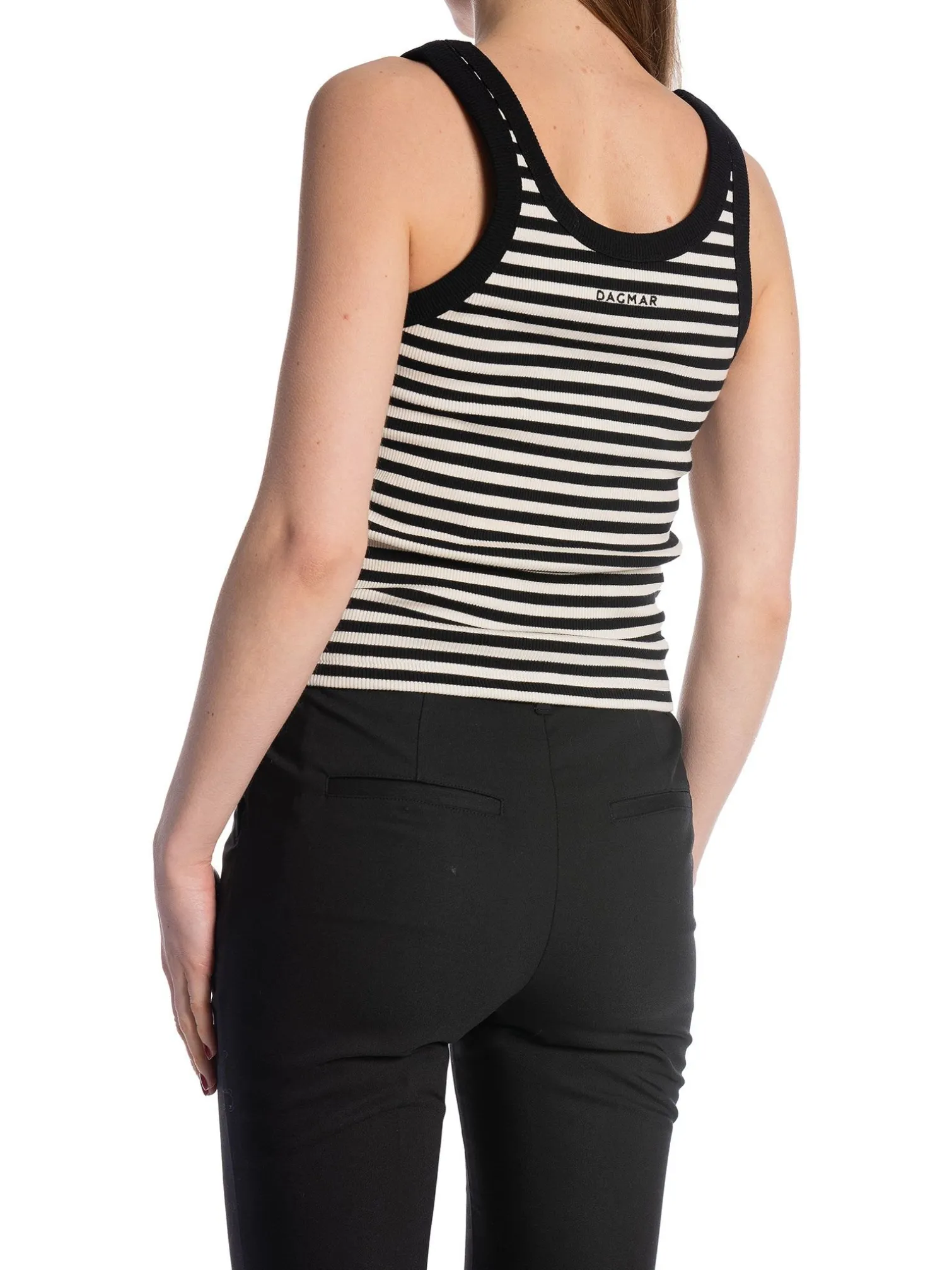Linen Rib Tank Top from Dagmar. A ribbed tank top. It comes with an embroidered “DAGMAR” detail at the neck. A stylish basic tank top!
