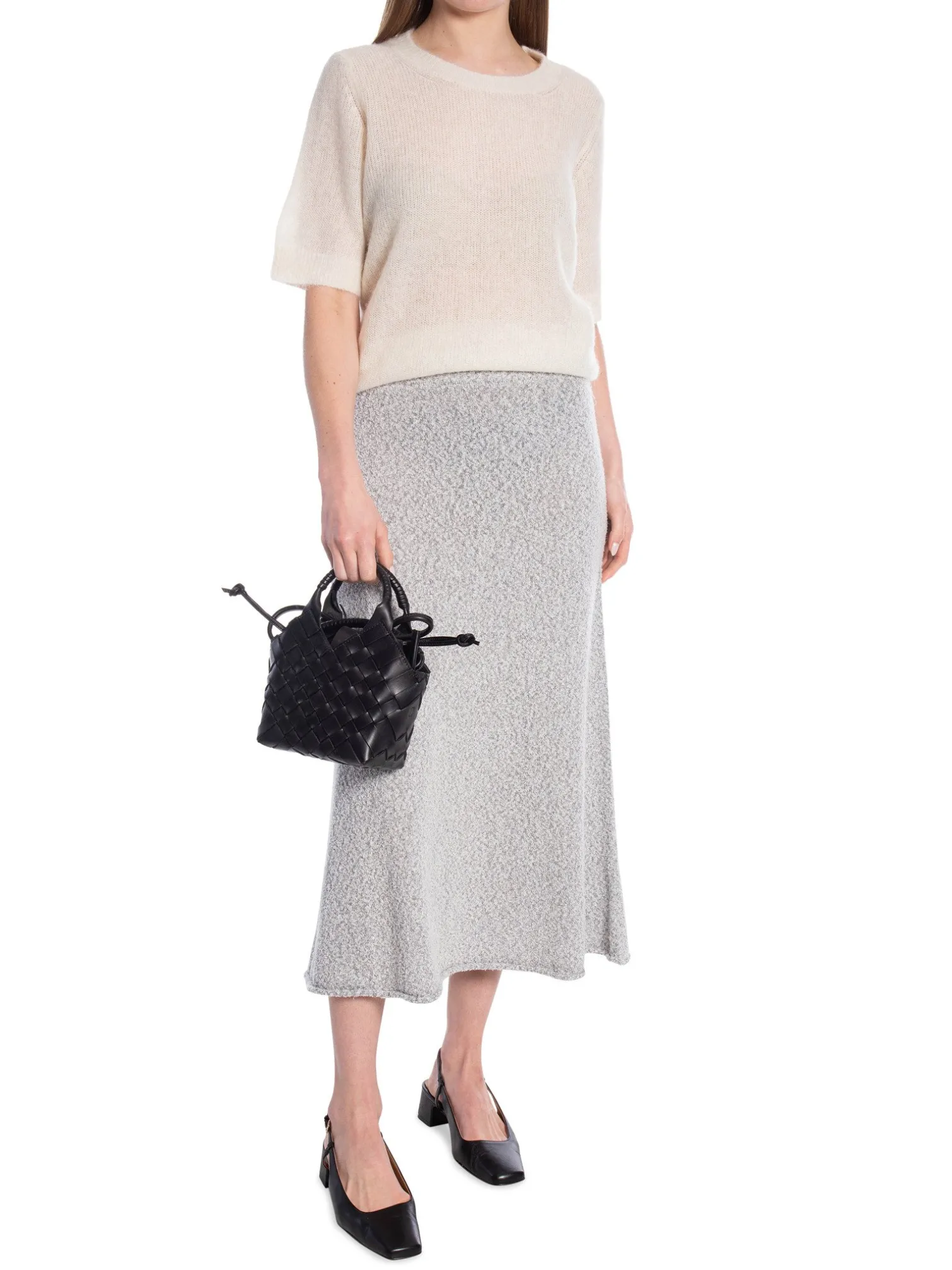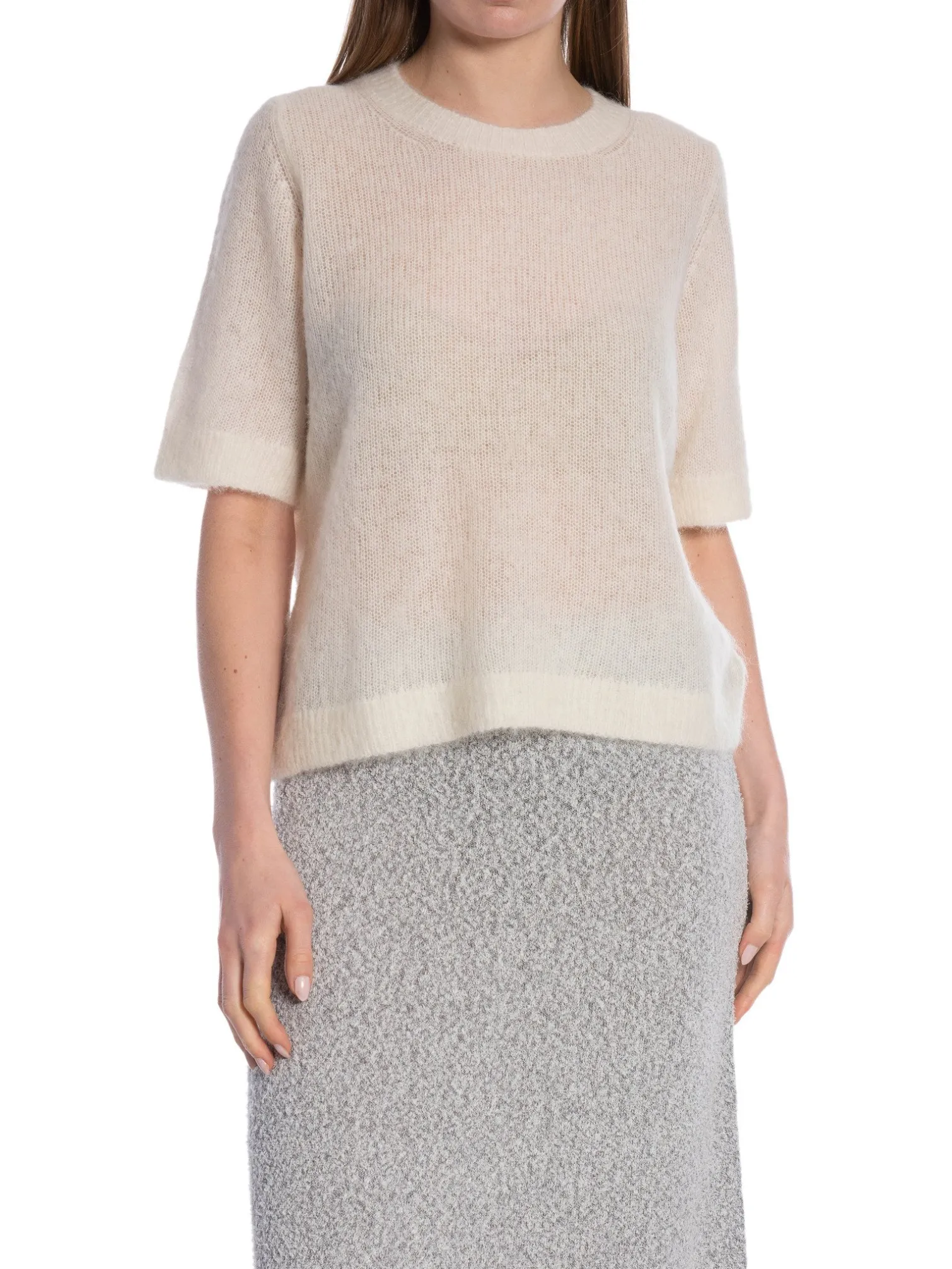 Top Brushed Alpaca from Dagmar. A nice knitted top with a round neckline, short sleeves and ribbed edges. Style with a satin skirt or a pair of suit pants!