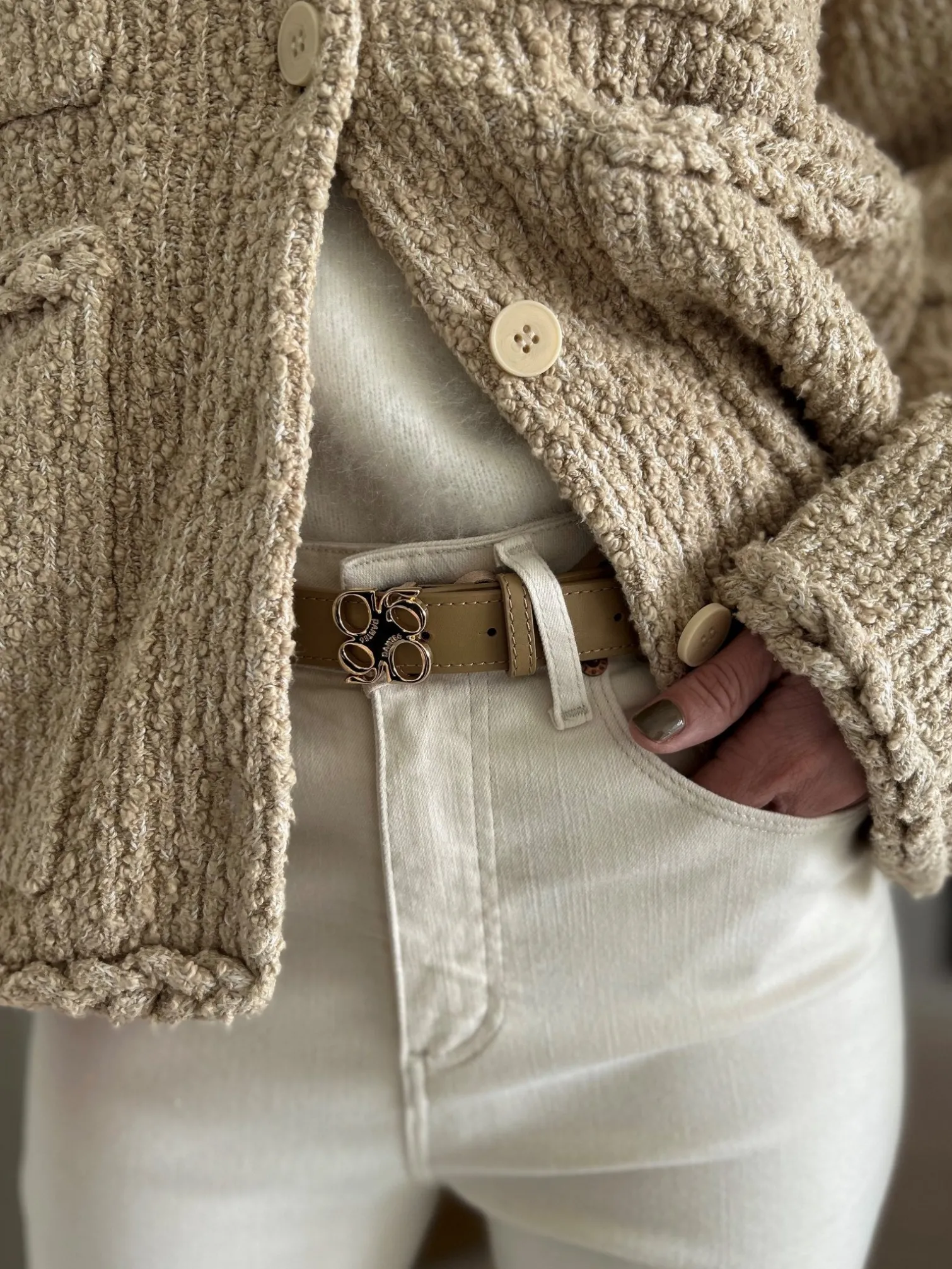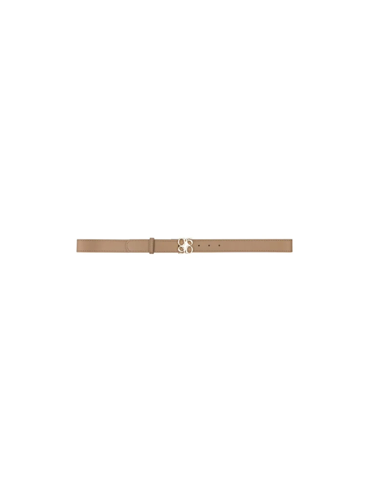 Belt Motif from Dante6. A luxurious belt in leather with a gold monogram at the front. Designed in a thin style which makes in the perfect belt to wear with dresses, pants or over a blazer to enhance the waistline.