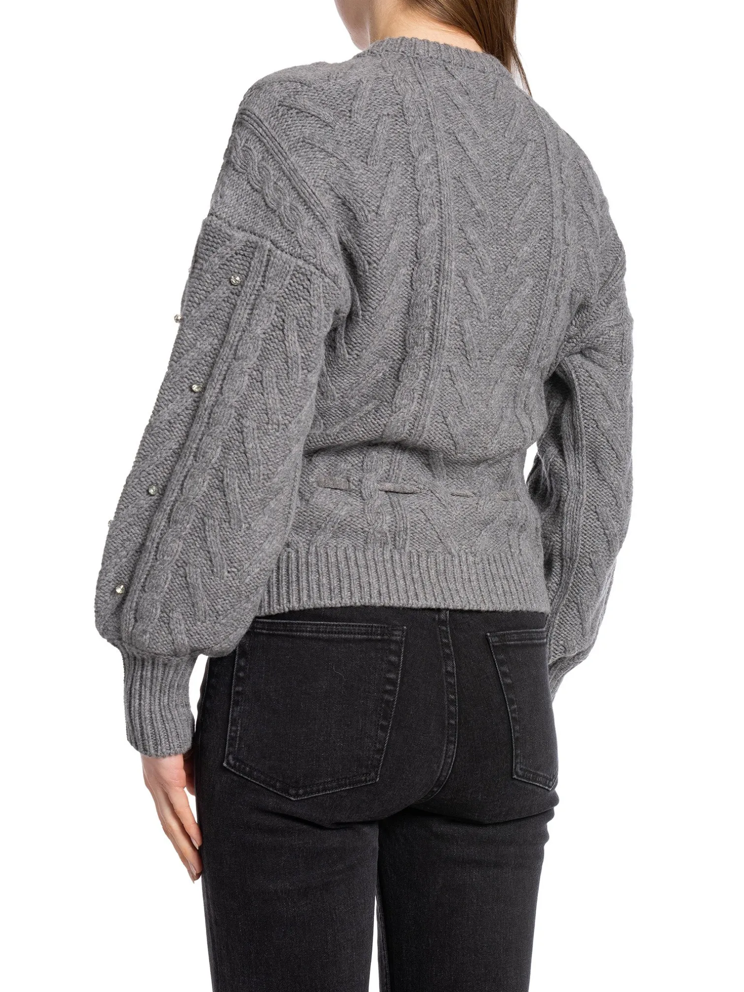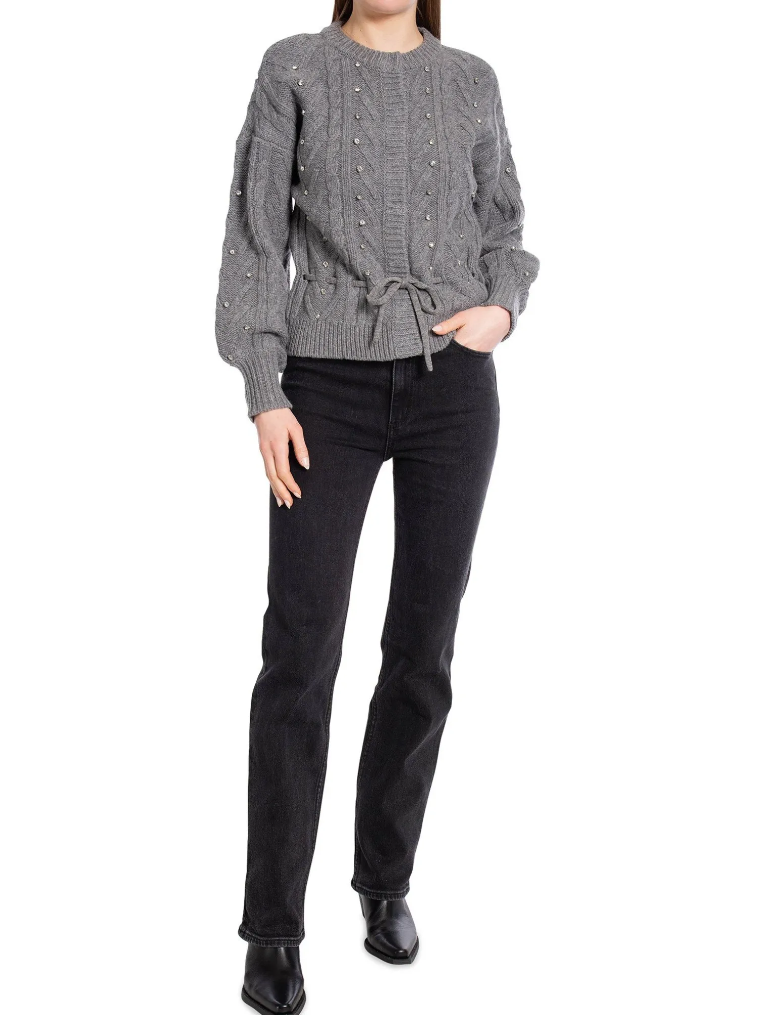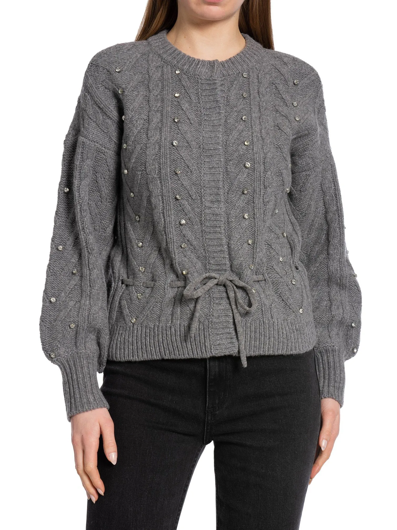 Cardigan Jaelyn Rhinestone by Dante6. A stylish knitted cardigan with glittering stones and a drawstring at the waist for a feminine look. Style it with a satin skirt or suit trousers for a nice look.