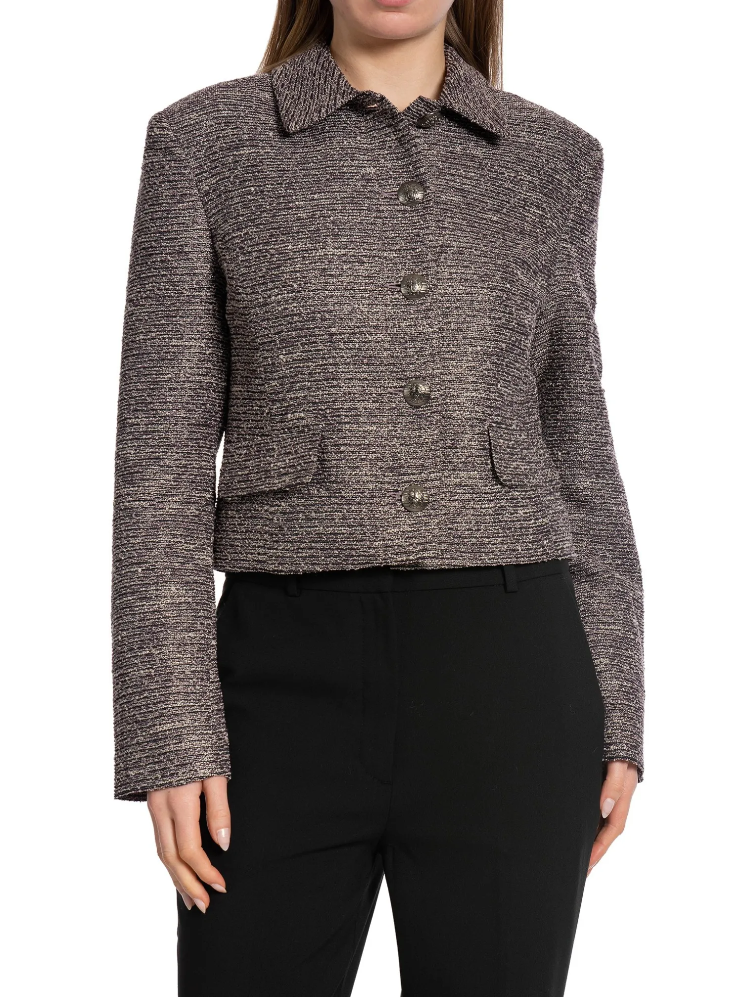 Jacket Lazeli from Dante6. Beautiful tweed jacket in a classic short length with marked shoulder pads, cool metalbuttons and two front pockets. Style with a pretty dress for a feminine look or a pair of denims for a more casual style!