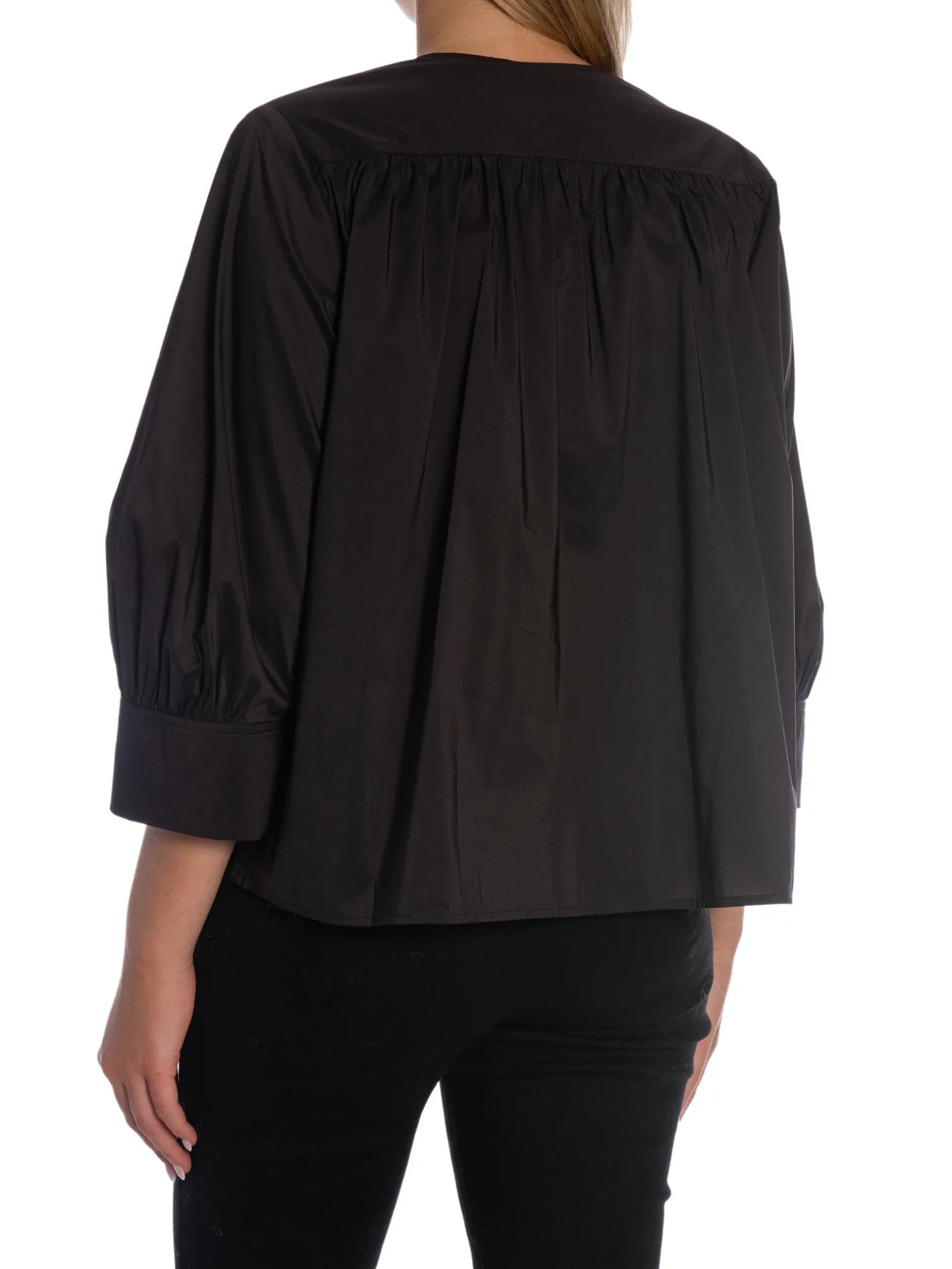 Shirt Reese from DAY. Trendy shirt in a loose, boxy fit, with a rounded neckline. Designed with a decorative button at the neck and hidden fastening in the rest. The shirt has loose draping and wide sleeves.Style with a pair of jeans for a modern office look!