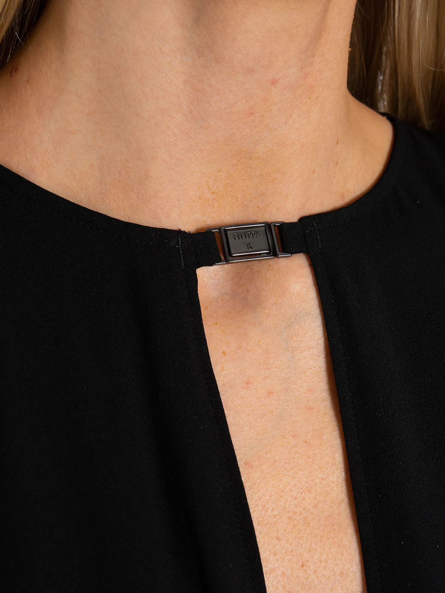 Dress Long Split by Filippa K. Long chiffon dress with deep front slit. Designed with a metal buckle at the neck ring, zip at the neck and high slit at the left side seam. The dress has a semi-lined upper body.