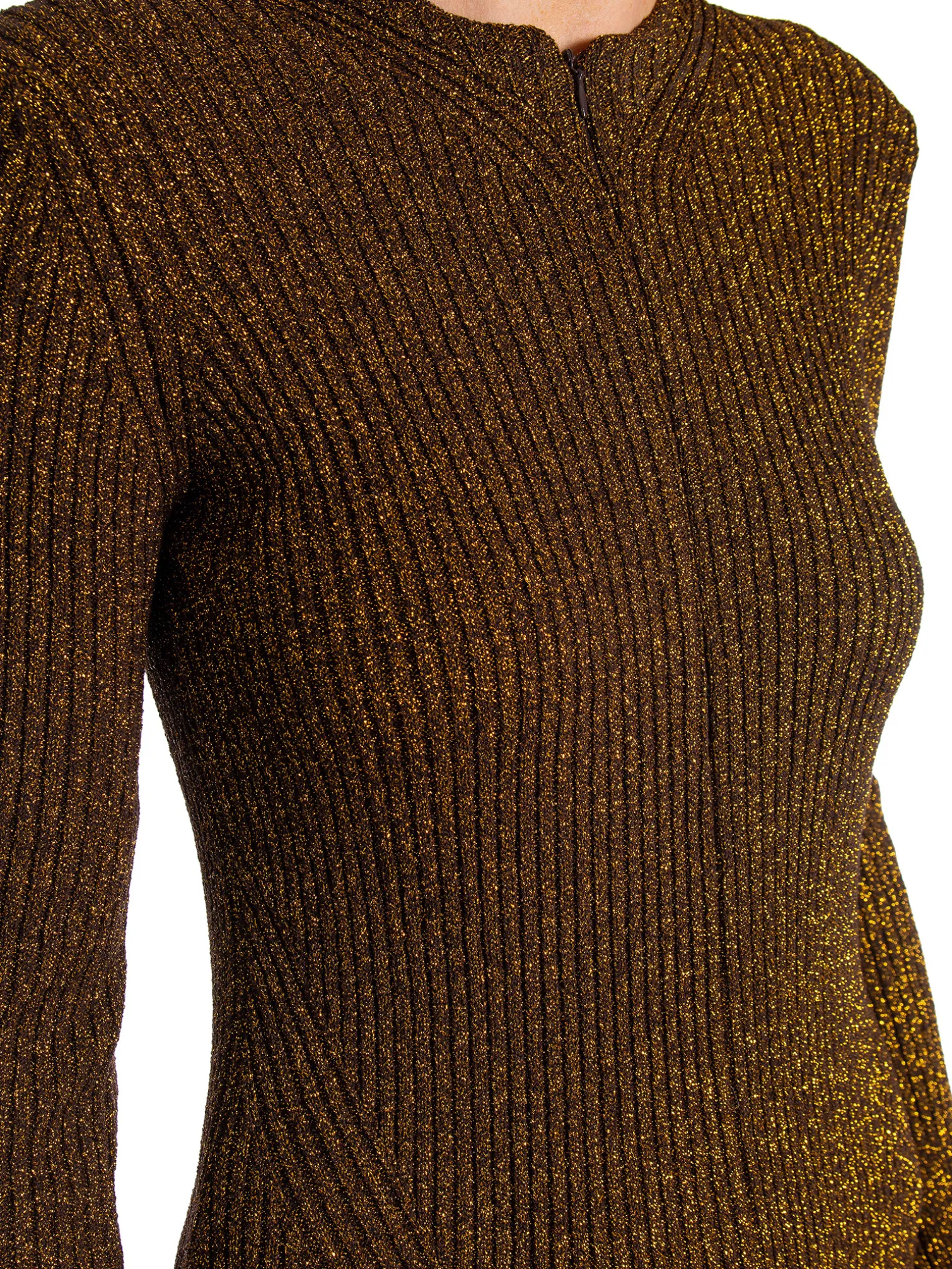 Dress Mole from Ganni. A long sleeve dress designed in gold glitter which gives a luxurious look. Clearly the perfect dress when you want to feel extra stylish or when going to a special occasion. Style it with heels or a sandal.