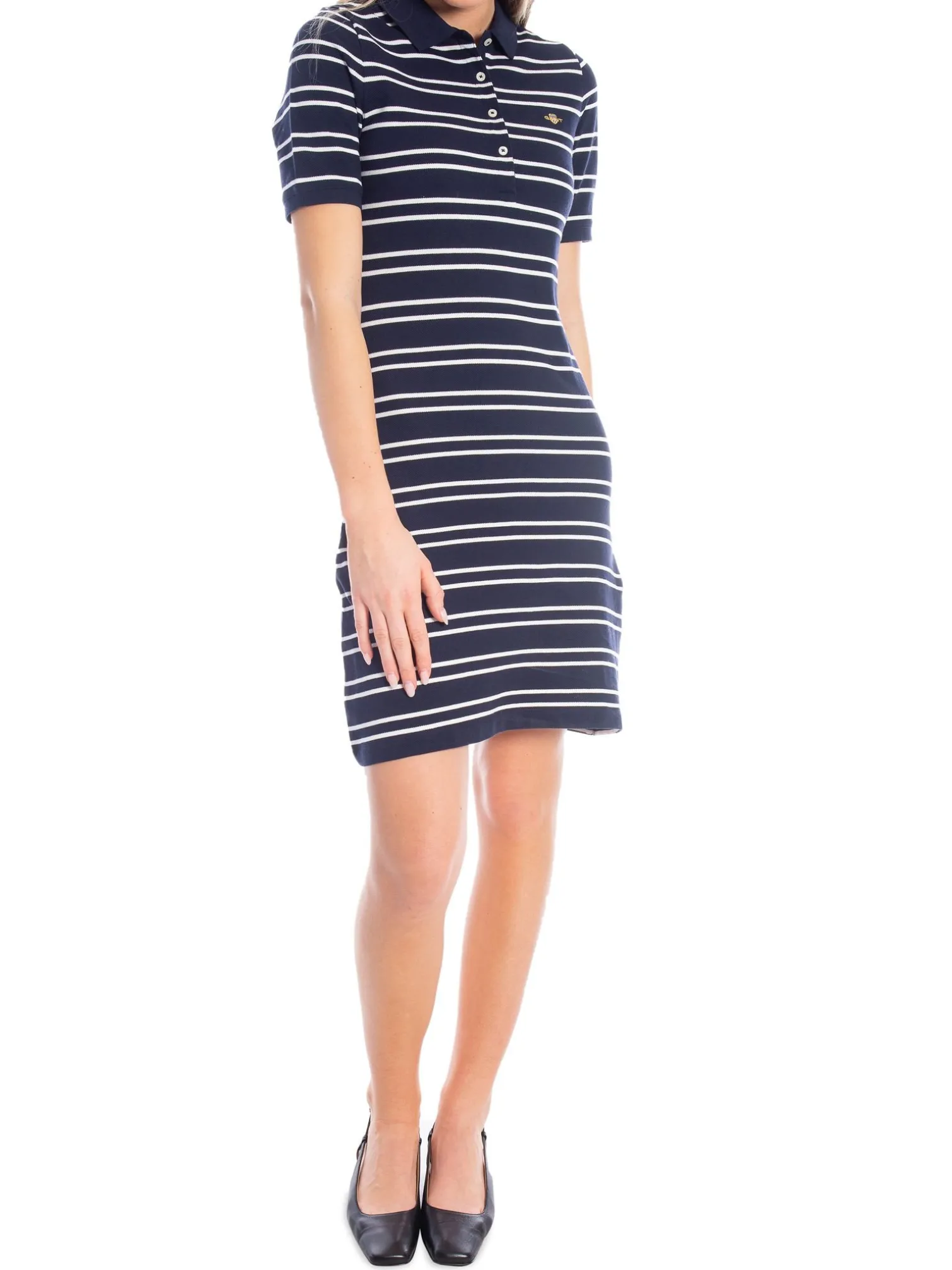 Dress Stripe Shield from Gant. A comfortable dress in a soft comfortable classic polo quality with a collar. The polo look is as classic as it is trendy and is the perfect look to wear when you want to be casually chic. Wear the dress with everything from sneakers to loafers!