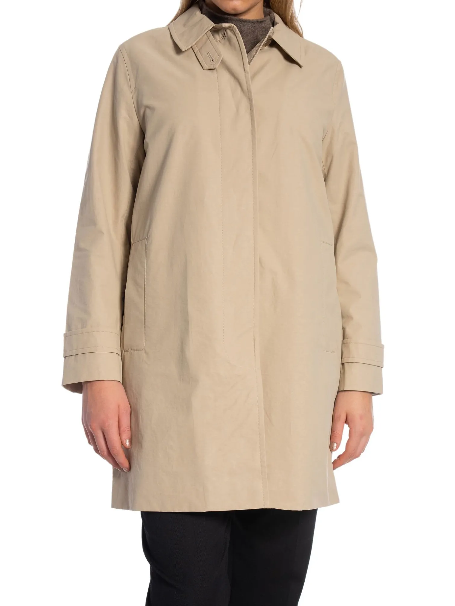 Car coat from Gant. A thinner trench coat-like coat in midi length. Fastens with invisible buttons at the front, collar and front pockets. Style with a pair of suit trousers and a blouse for a stylish look.