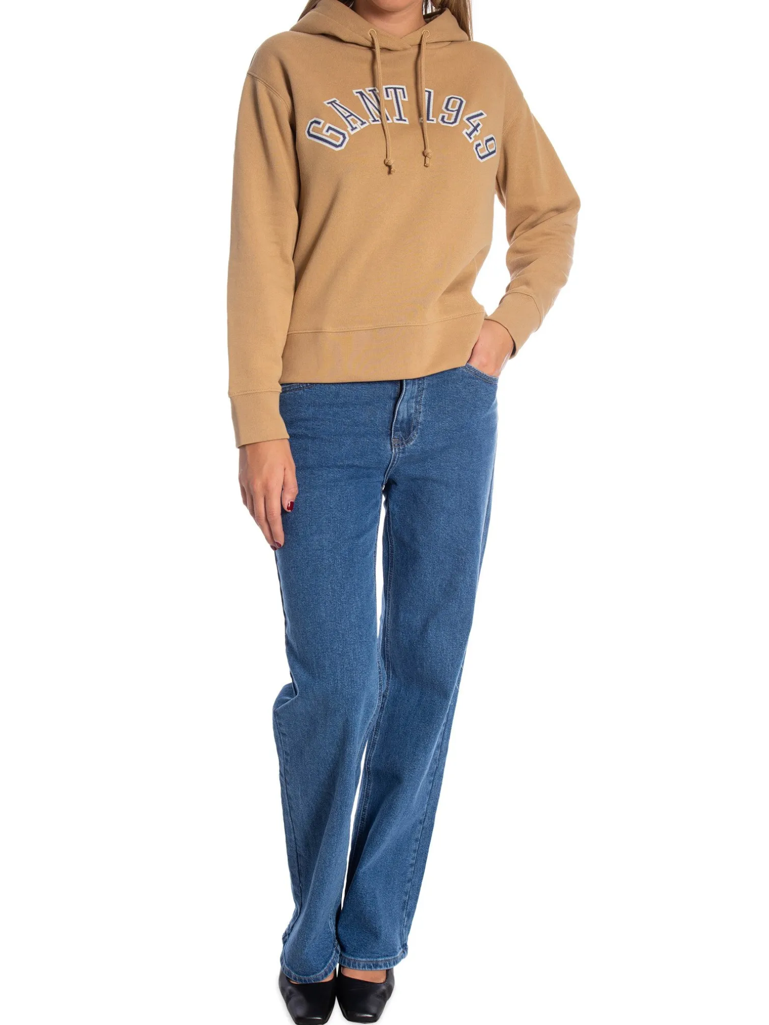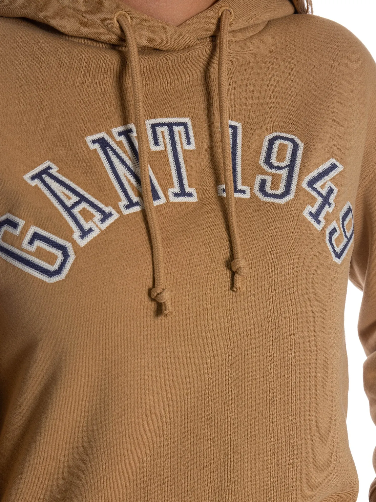 Hoodie Arch from Gant. A stylish beige hoodie with a text print on the front. Made in a nice soft organic cotton. Wear with your jeans and throw on a coat for the perfect fall look!