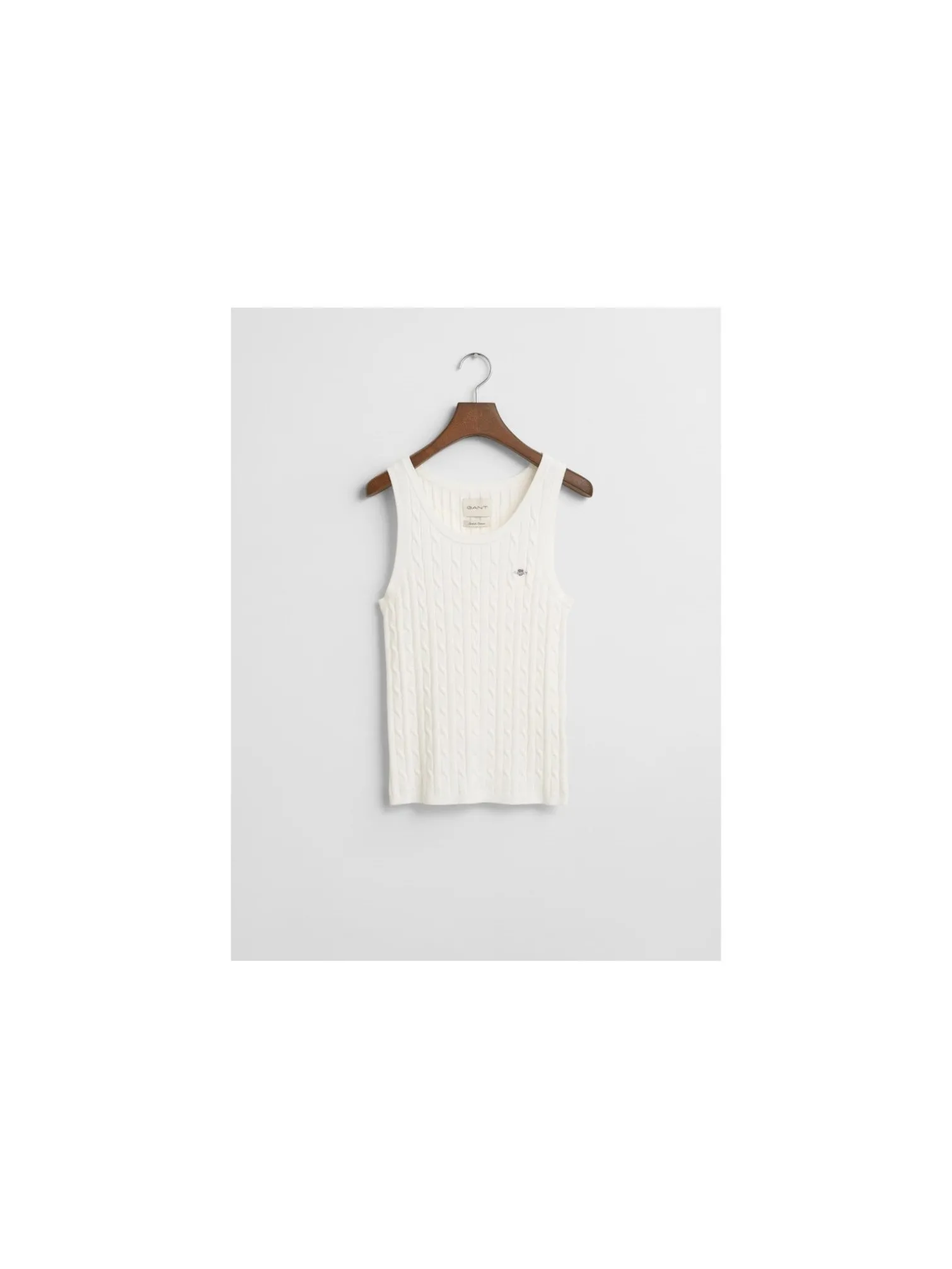 Tank Top Stretch Cotton Cable Tank Top from Gant. A stylish and clean tank top in stretchy cable knit. Ribbed hem and Gant logo on the left chest. Style as a top with a pair of jeans or a skirt, or wear under a jacket.