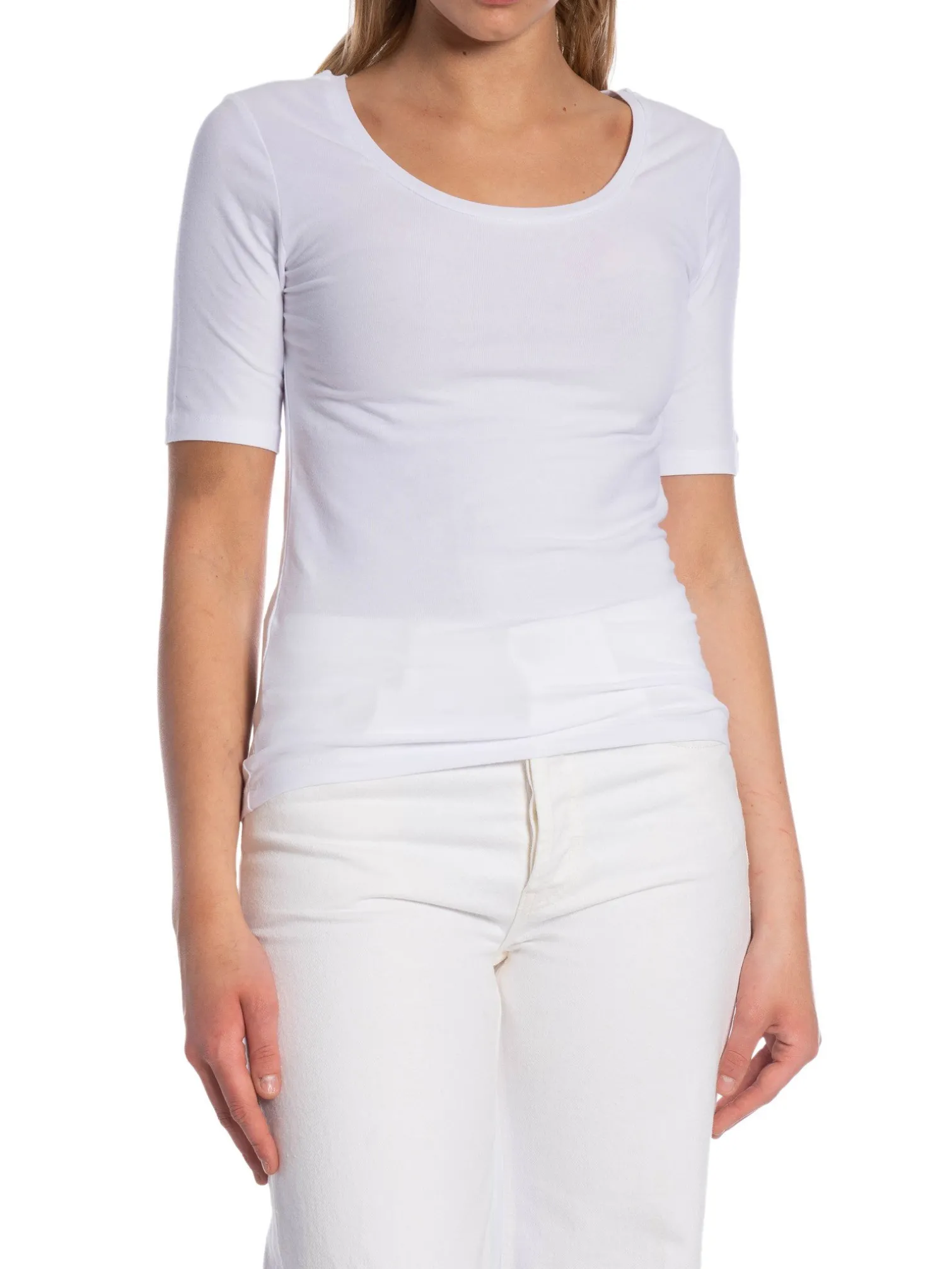 T-shirt Ela from Gant. A soft and stretchy T-shirt! Designed in a longer model with a deeper neckline. Style together with a skirt or a pair of light jeans.