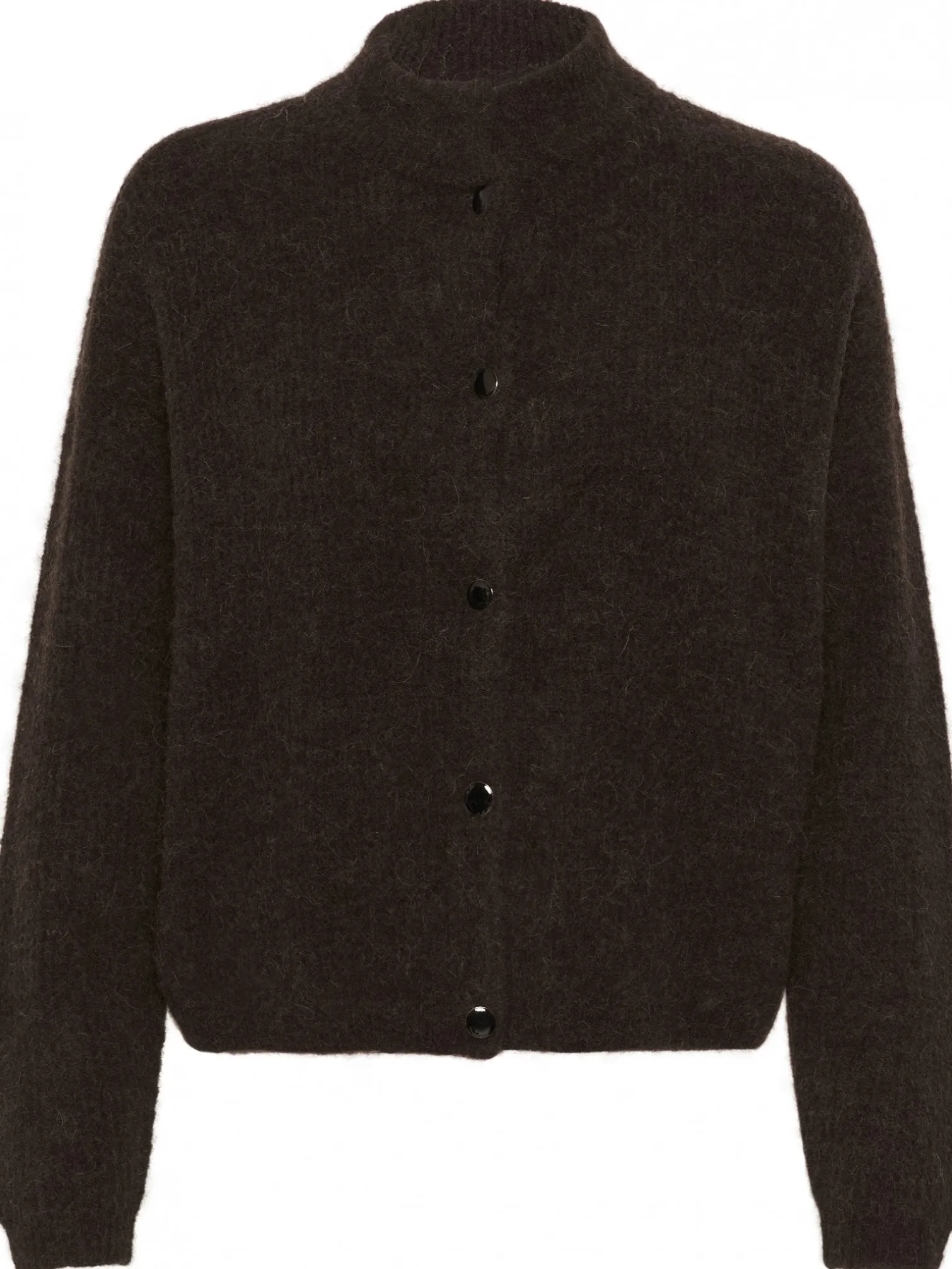 Cardigan Alpha from Gestuz. A stylish cardigan in a lovely wool blend with a loose fit.Designed with ribbed hem, cuffs and collar. Closes with buttons at the front.Style with a pair of suit trousers for a modern office look!