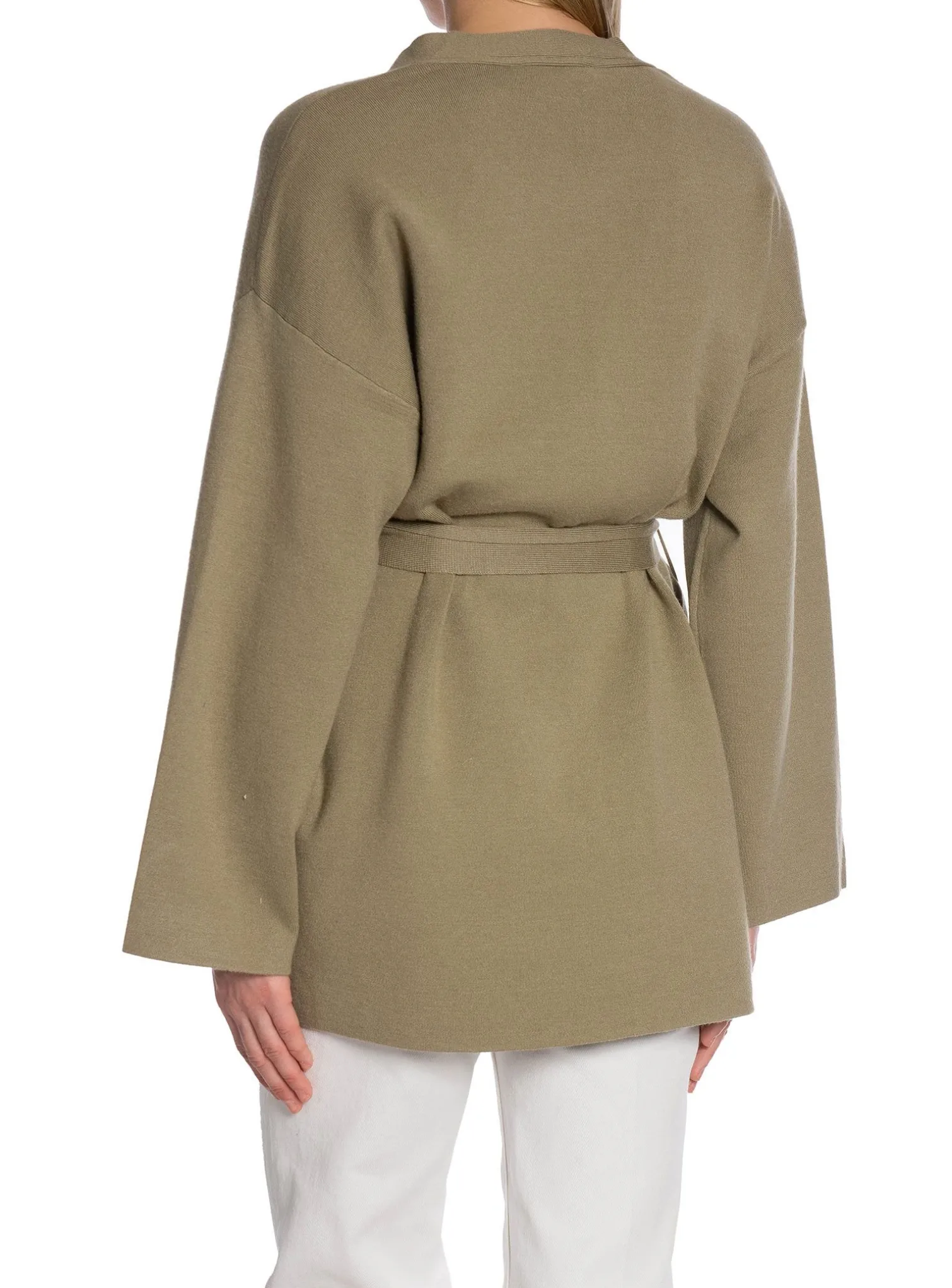 Cardigan Talli from Gestuz. A comfotable cardigan in a viscose blend with a tie in the waist. An elegant designed knitted cardigan that can be used instead of a blazer when you want to feel dressed up in a relaxed way. The neutral green color adds that extra touch and is lovely to wear with both suit pants and jeans!