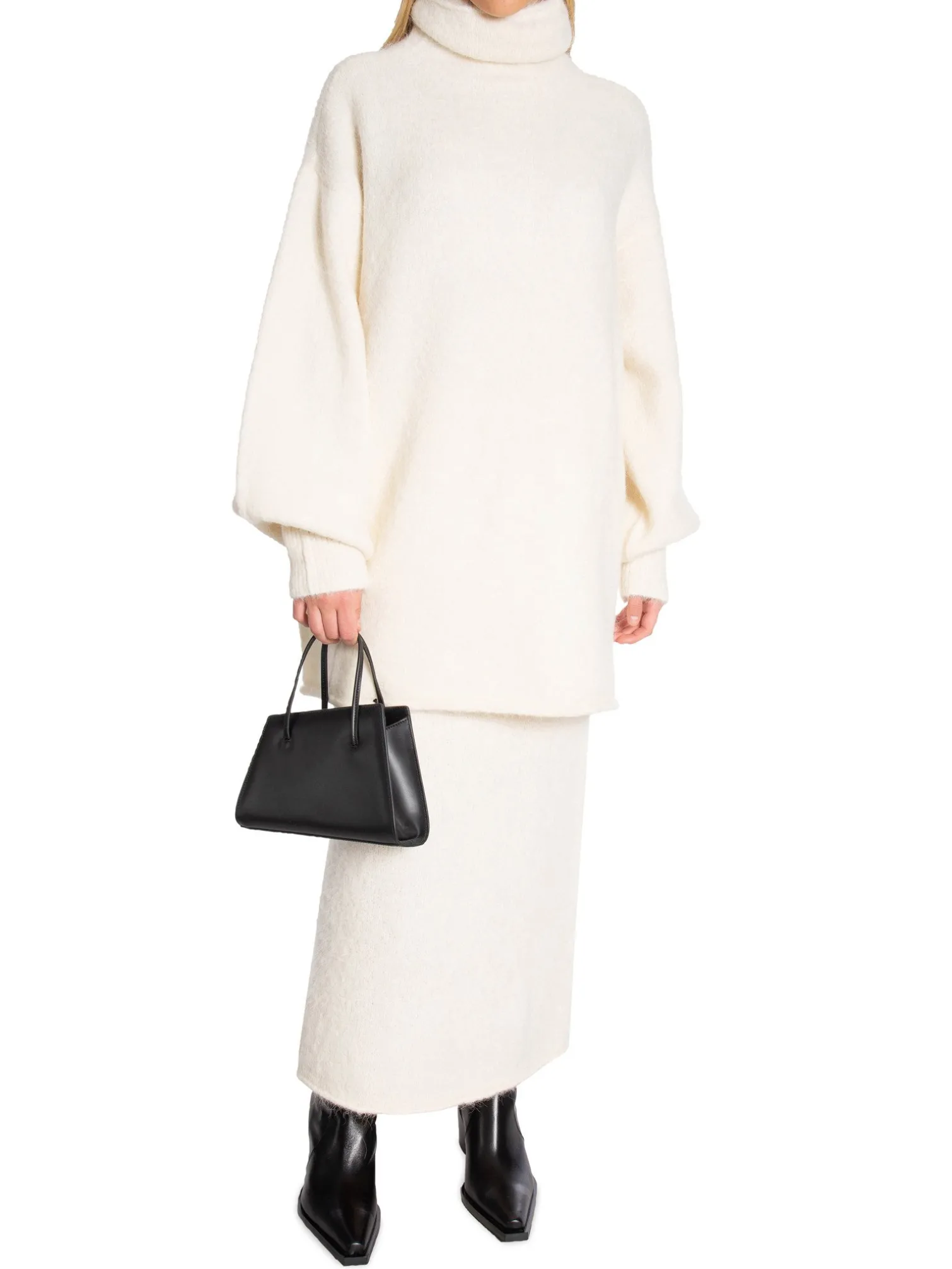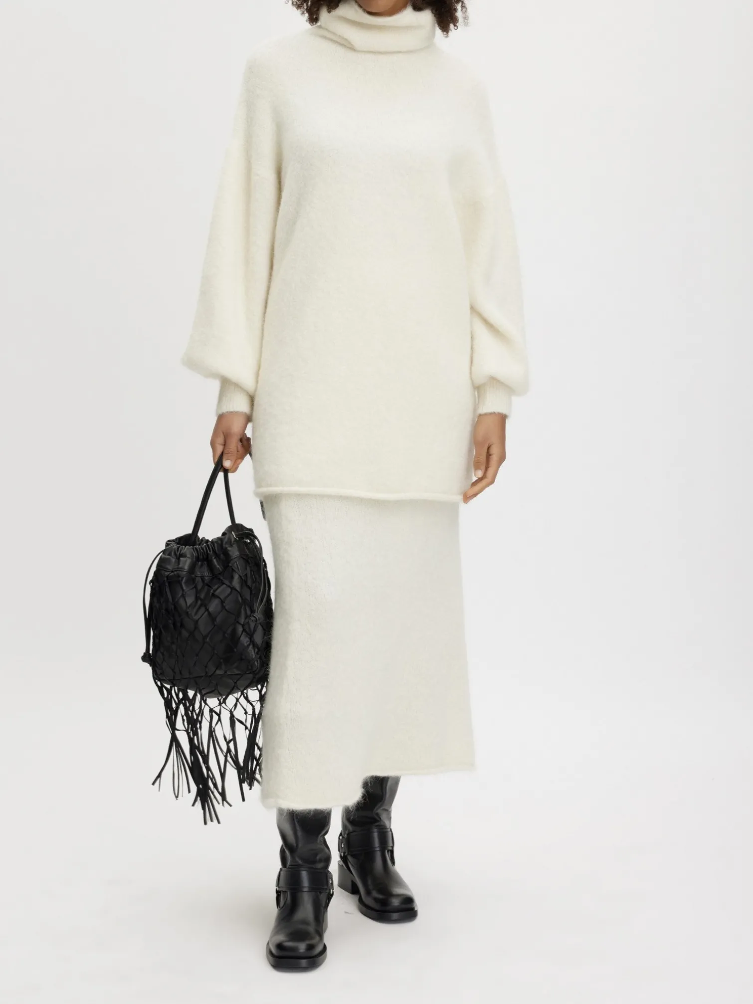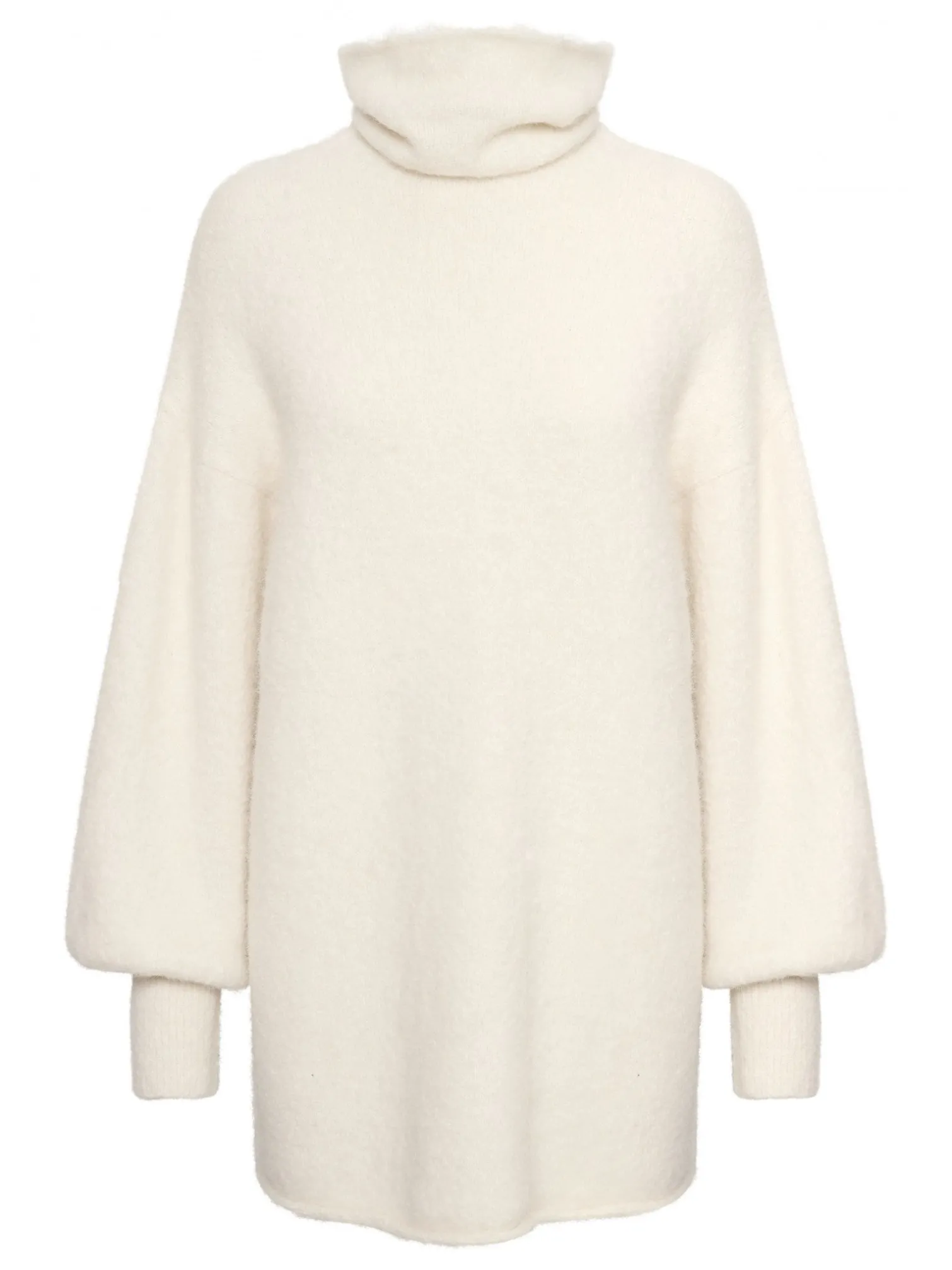 Sweater Posia from Gestuz. Knitted sweater in a longer model with high neck and puffy sleeves which gives an oversized look.