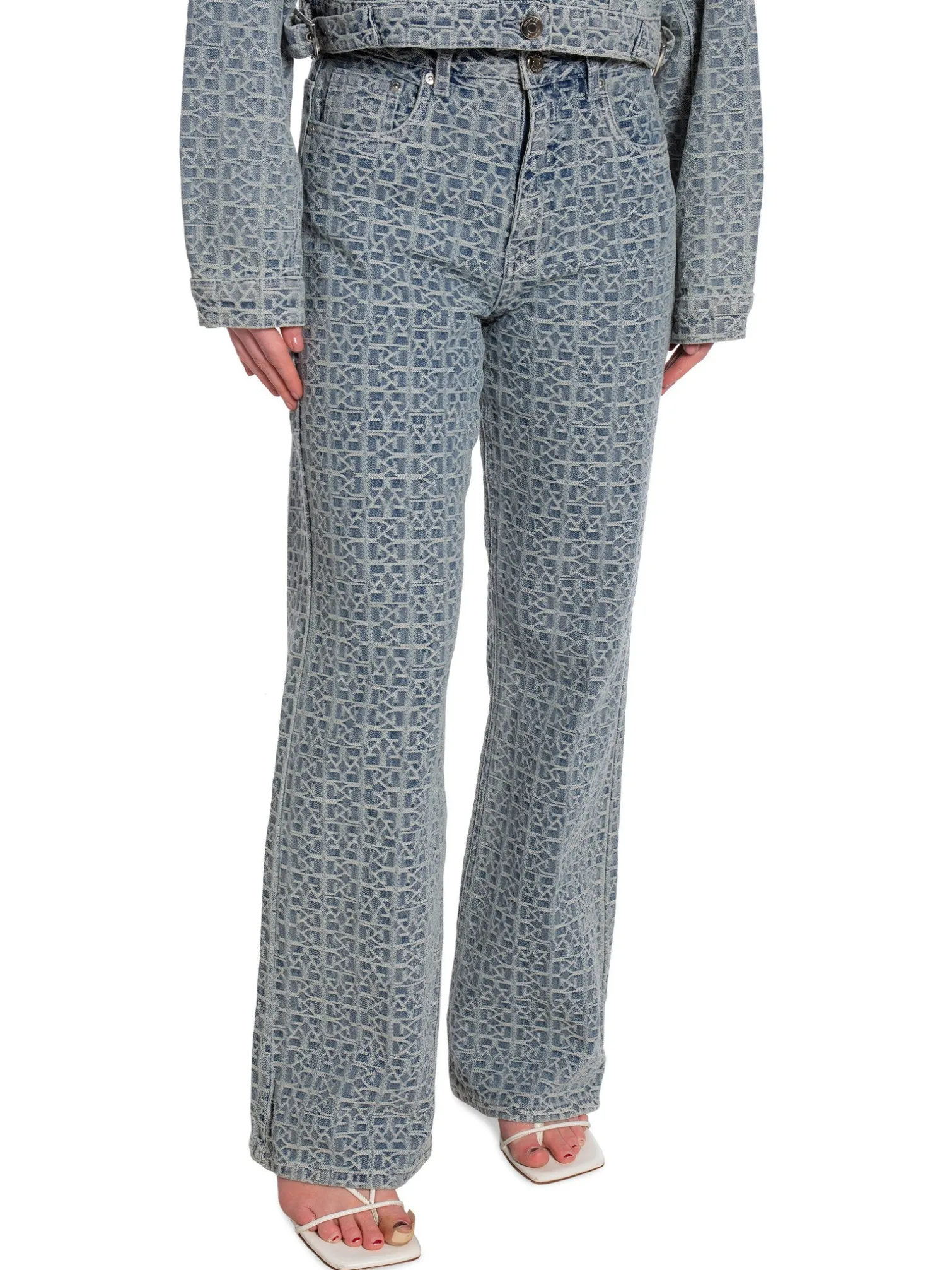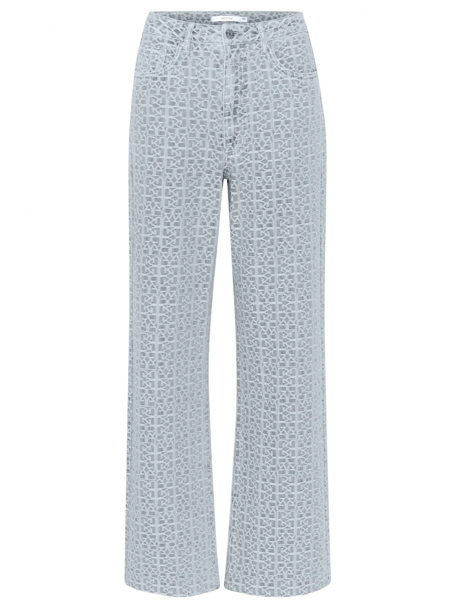 Jeans Nila Wide from Gestuz. A pair of patterned wide leg jeans with a mid rise. The patterned jeans are a stylish and fun addition to your the wardrobe. Style with a white shirt!