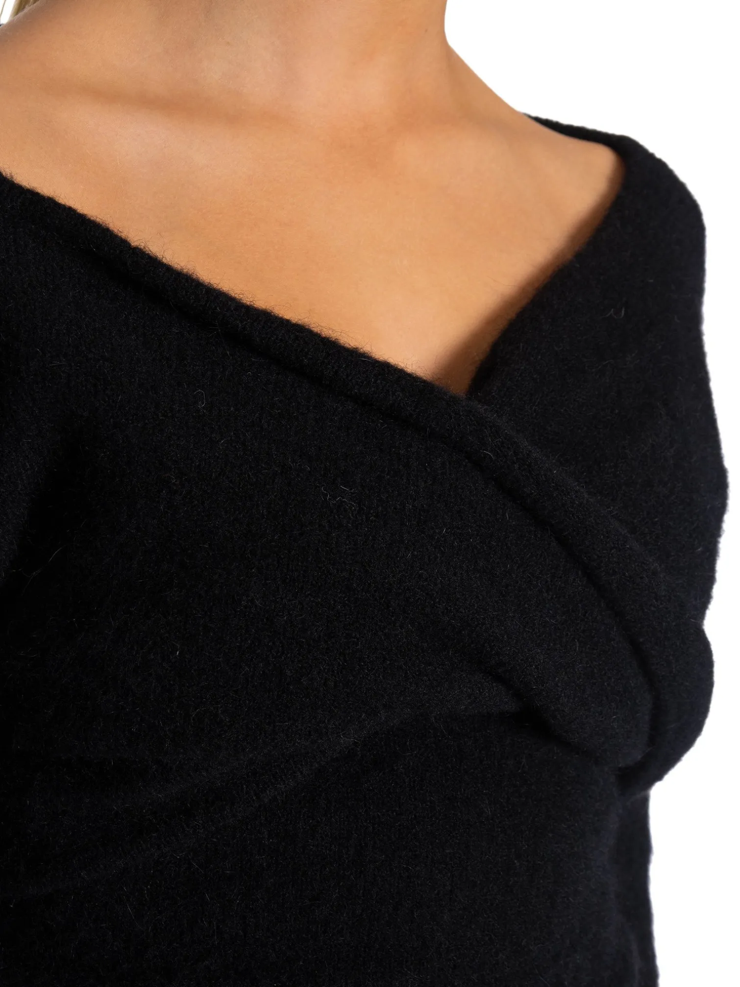 Top Alpha from Gestuz. A two in one top in a soft alpaca-mix. The top has a twisted detail on the front, a separated top underneath and has a slim fit. Can be worn as a off-shoulder top!