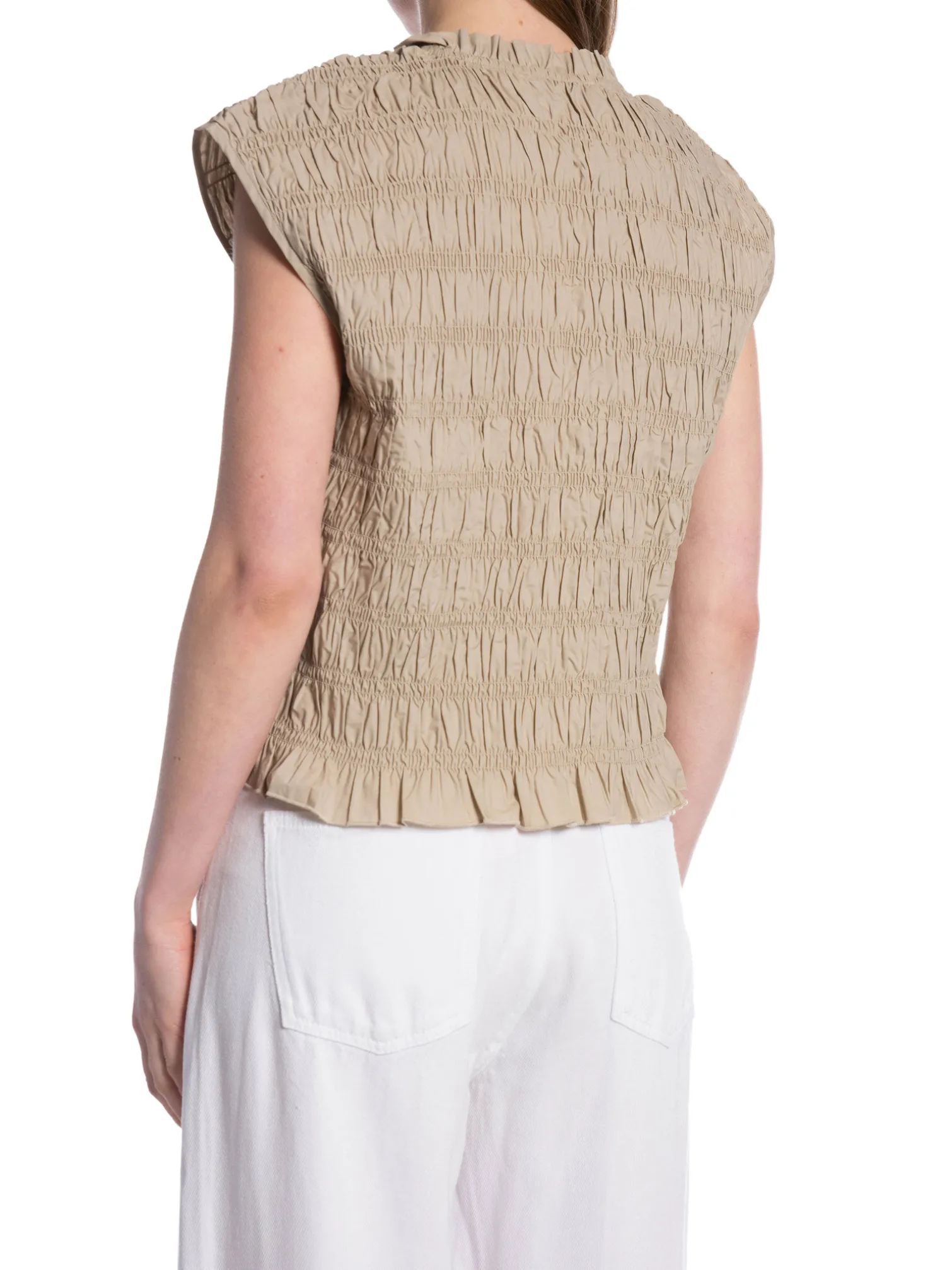 Lena top from Gestuz. A nice sleeveless beige top in smock. The top has a small ruffle by the neck. Style it with a pair light blue jeans and sandals and you’re good to go!