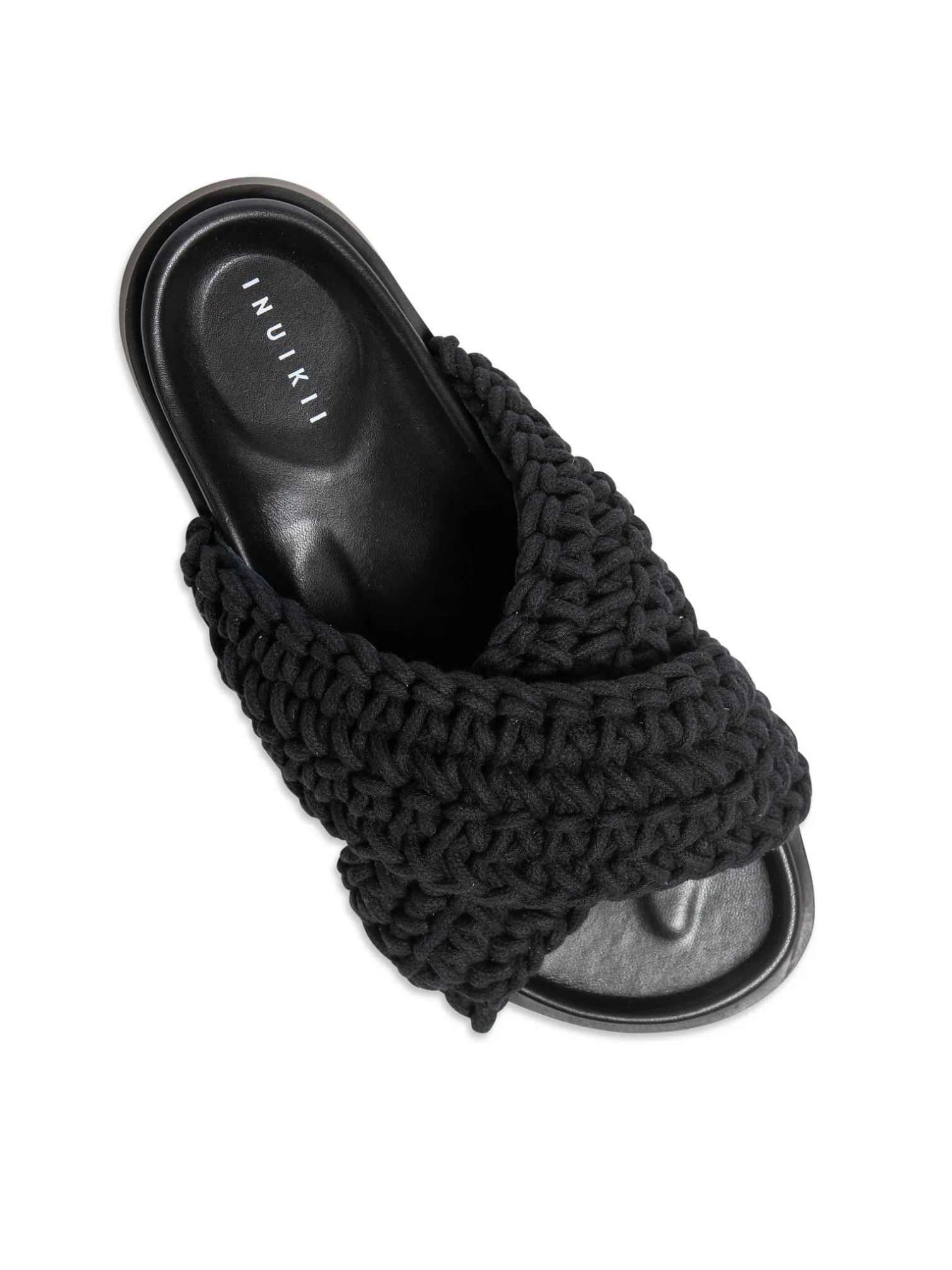 Sandal Woven from Inuikii. Unique sandal with a mix of different materials such as ergonomic rubber sole and crocheted straps. Wear them with everything from a summery dress to a pair of casual jeans!