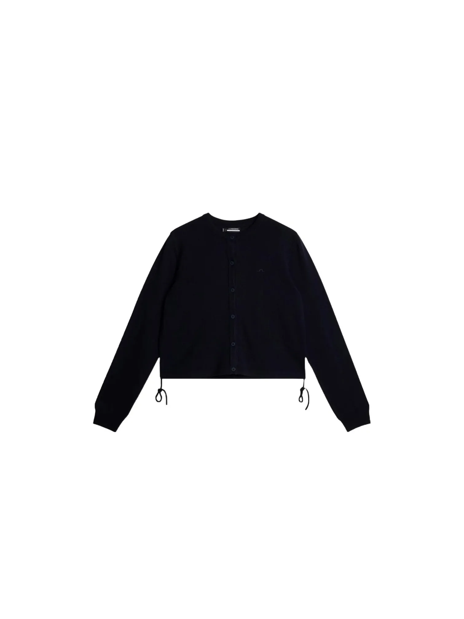 Cardigan Thalia Knitted from J.Lindeberg. A soft knitted cardigan in merino wool. Designed in a relaxed fit, has a rounded neckline and button closure at the front. Has a drawstring at the back to adjust the fit. Wear with a pair of jeans or suit pants!