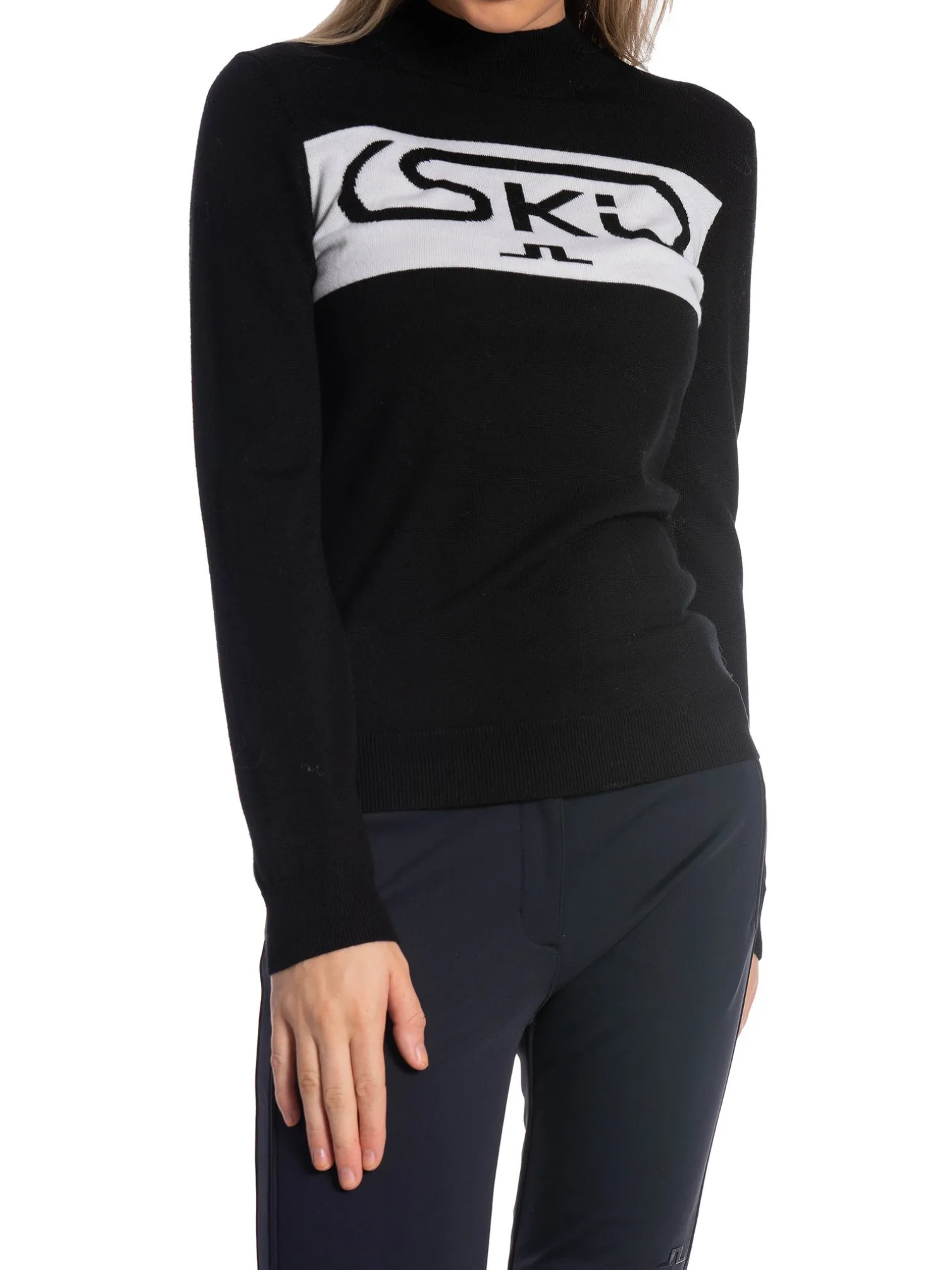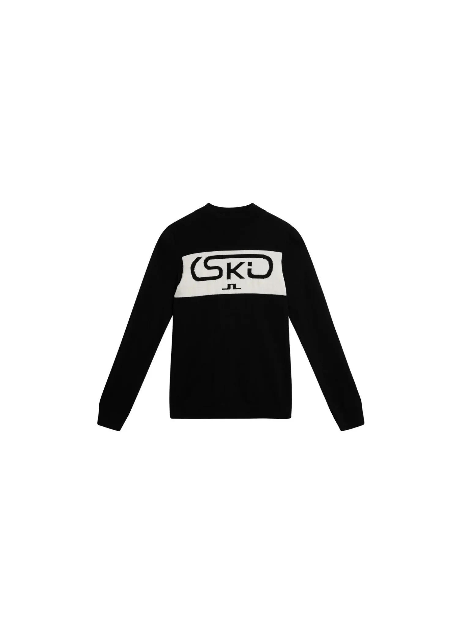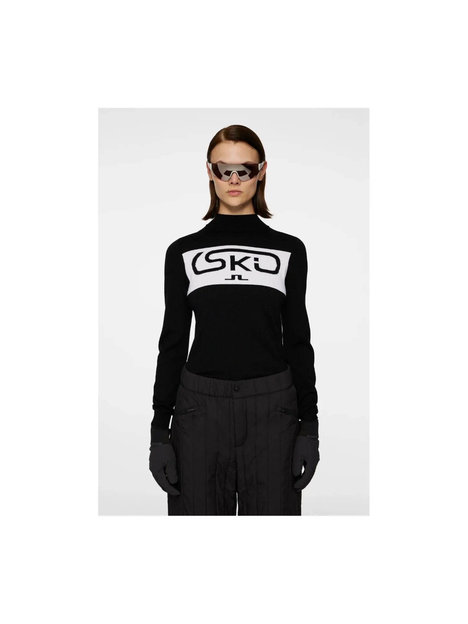 Sweater Kelby Knitted from J.Lindeberg. A soft merino wool knit sweater with a ski-themed knit pattern. Designed with a high neckline, contrast knit neckline, cuffs and hem. The perfect sweater for afterskin or just a chilly fall or winter day!