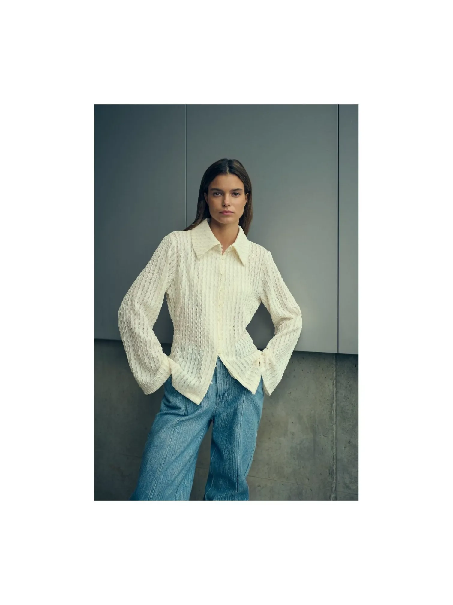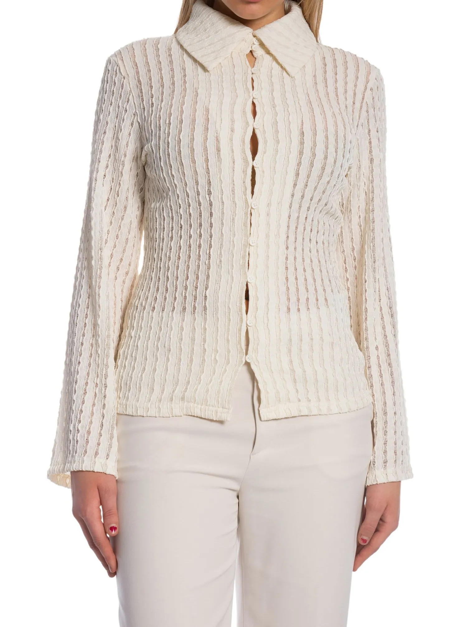 Shirt Tekla from Karen By Simonsen. Cream white shirt with straight sleeves and collar. Buttoning at the front. Perfect to style with blue jeans.