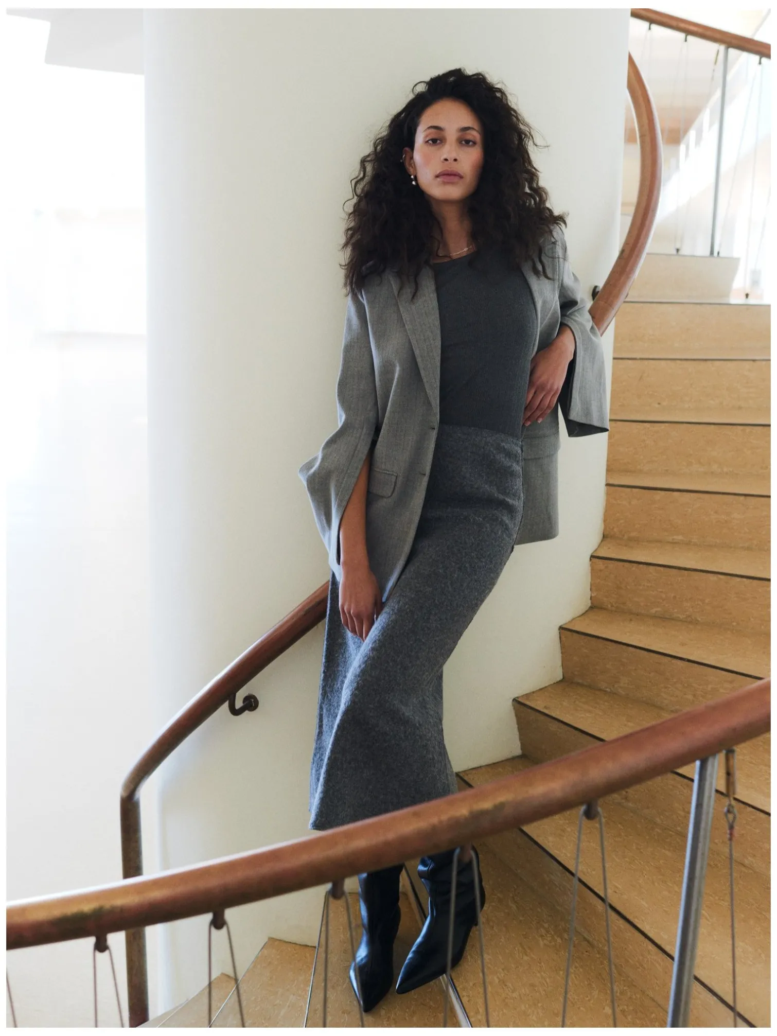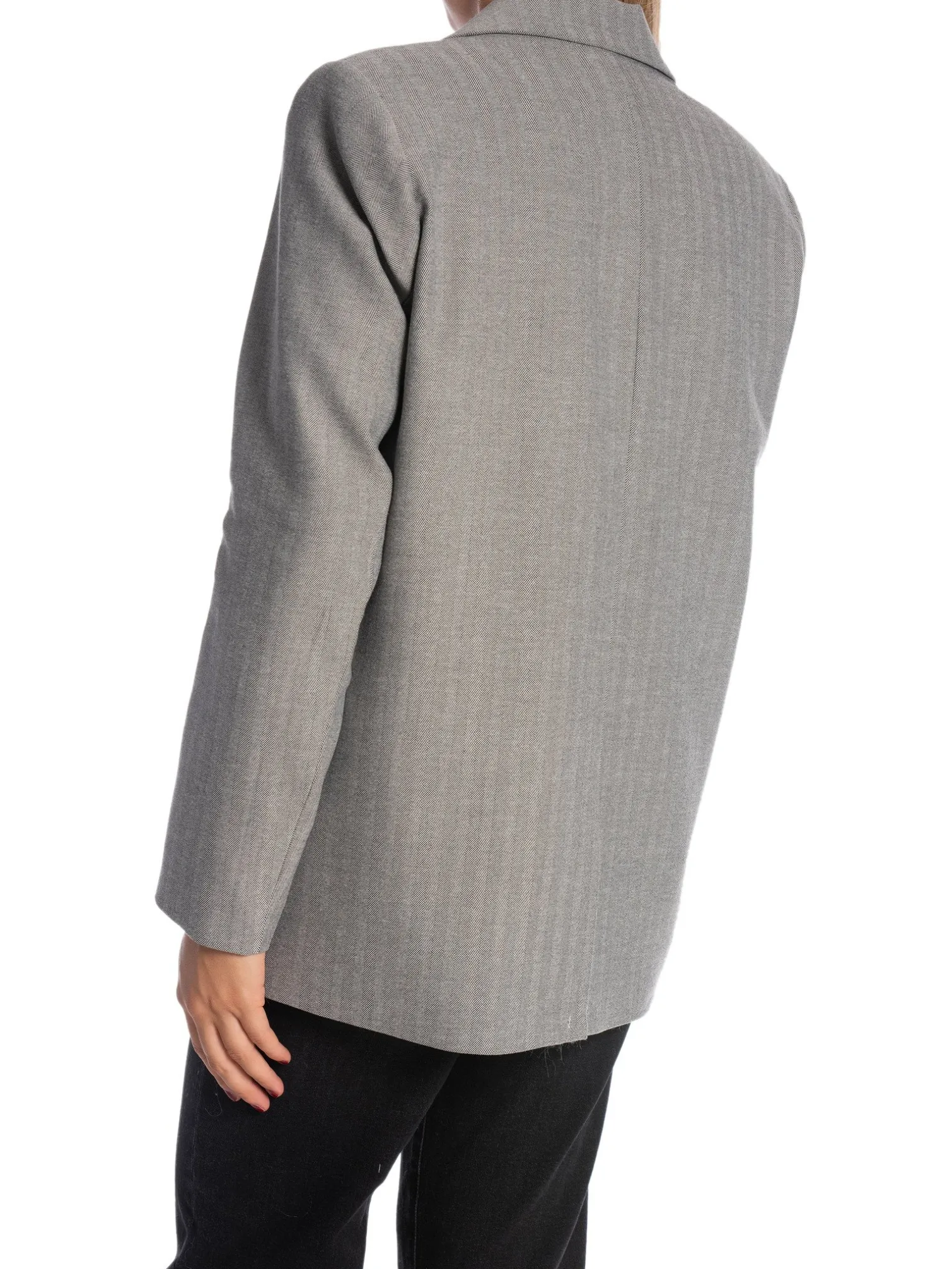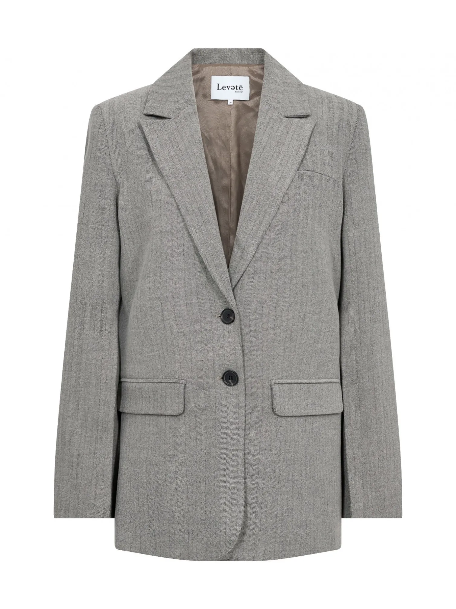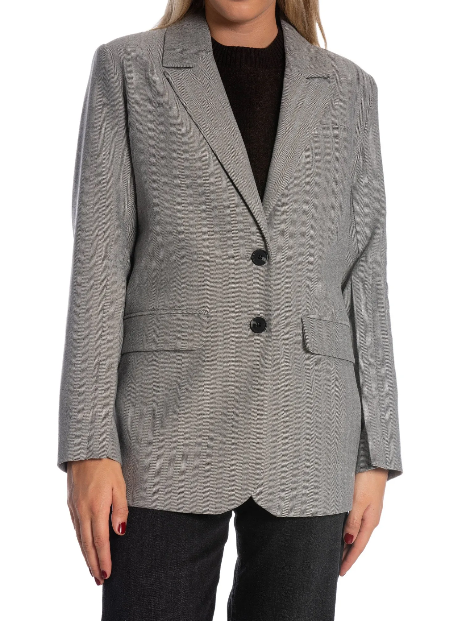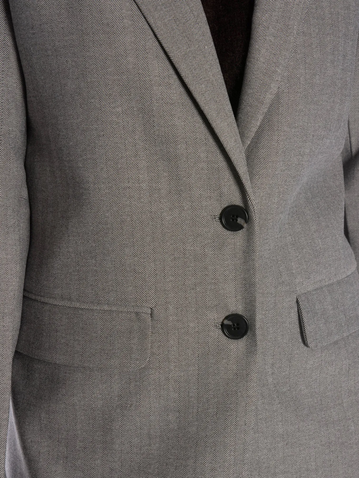 Blazer Infinity from Levete Room. Trendy straight fitted blazer with shoulder pads. Designed with two front pockets, inside pocket, decorative lapel and back slit. Wear with jeans and a white shirt for a crisp fall look!