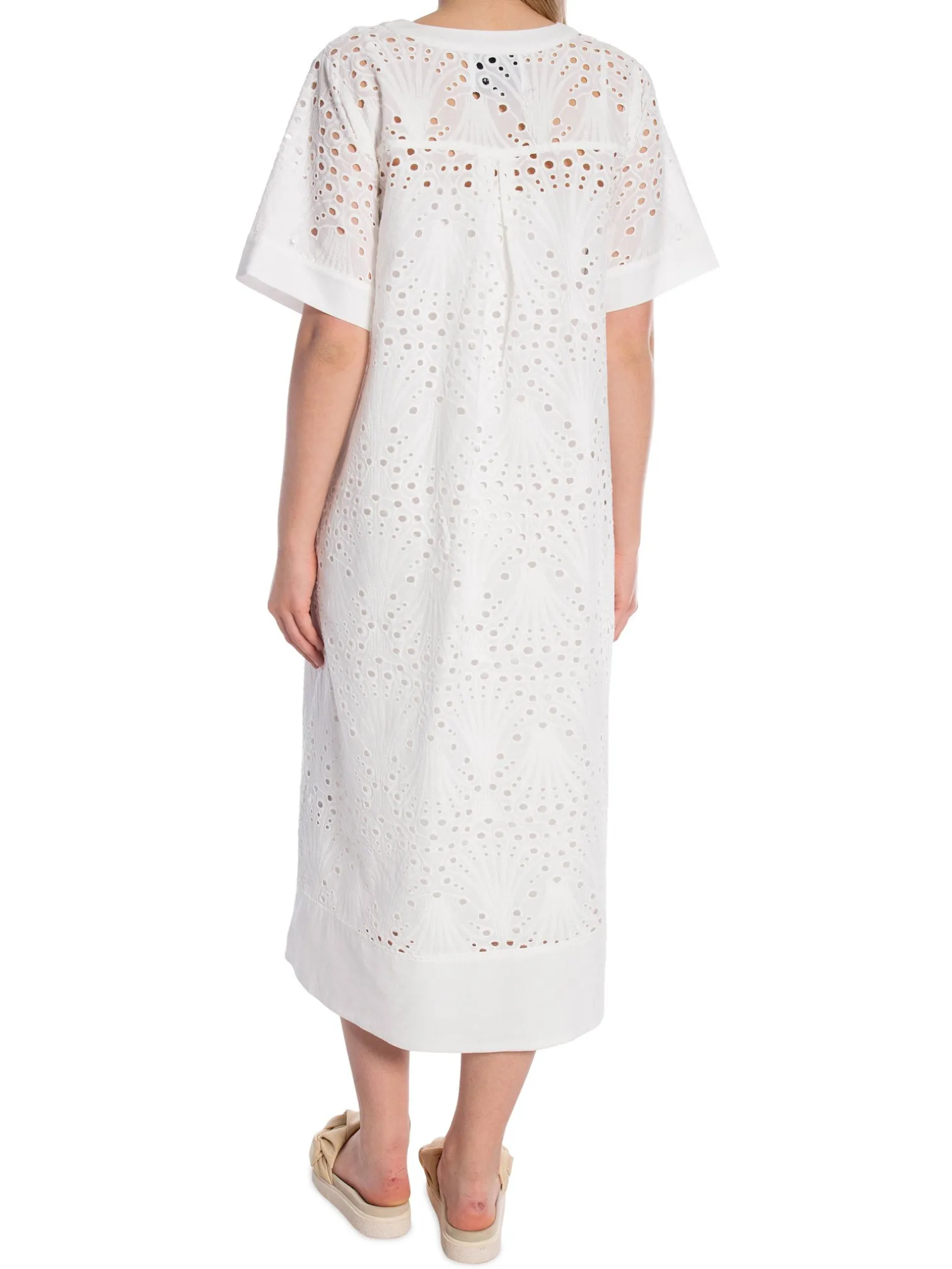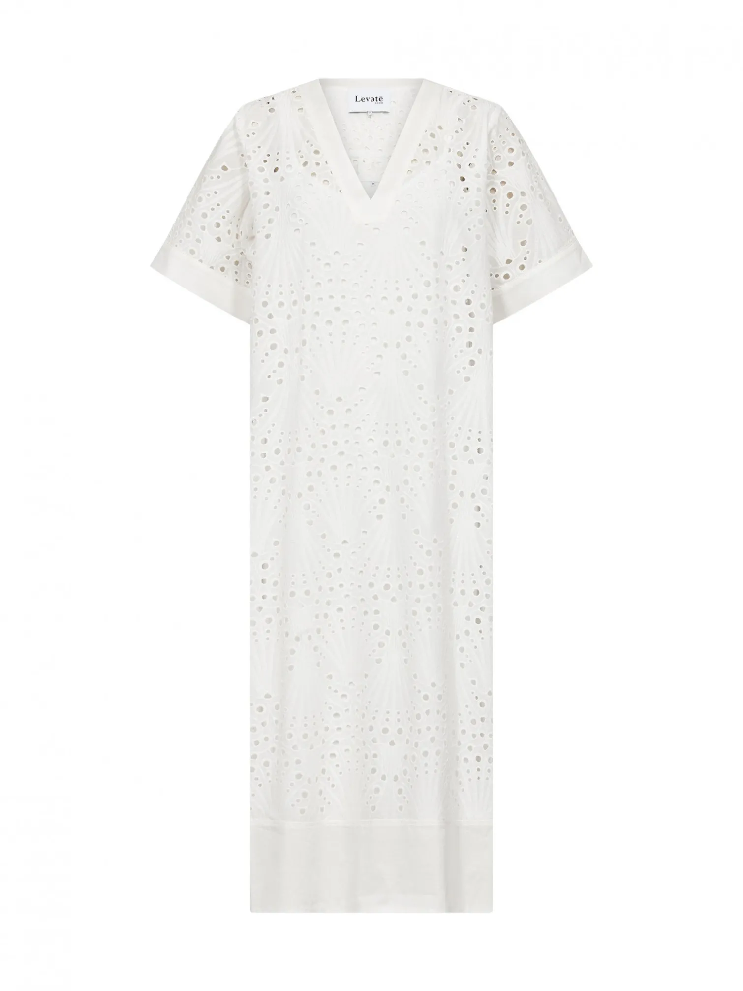 Dress Gisa from Levete Room. A beautiful relaxed long dress with patterned details. The dress is designed in a straight fit and has an attached inner dress. Wear with a pair of sandals for a stylish everyday look!