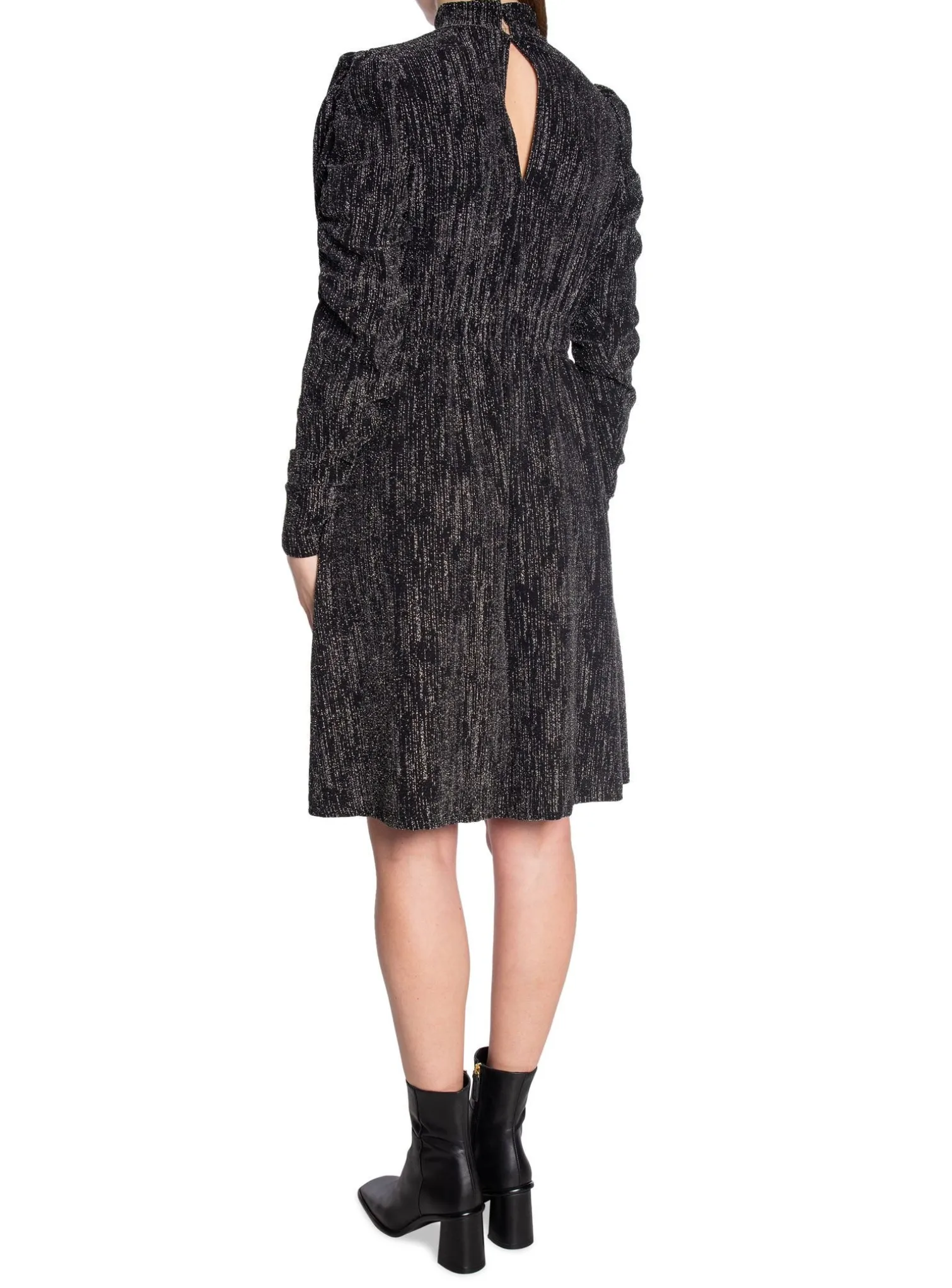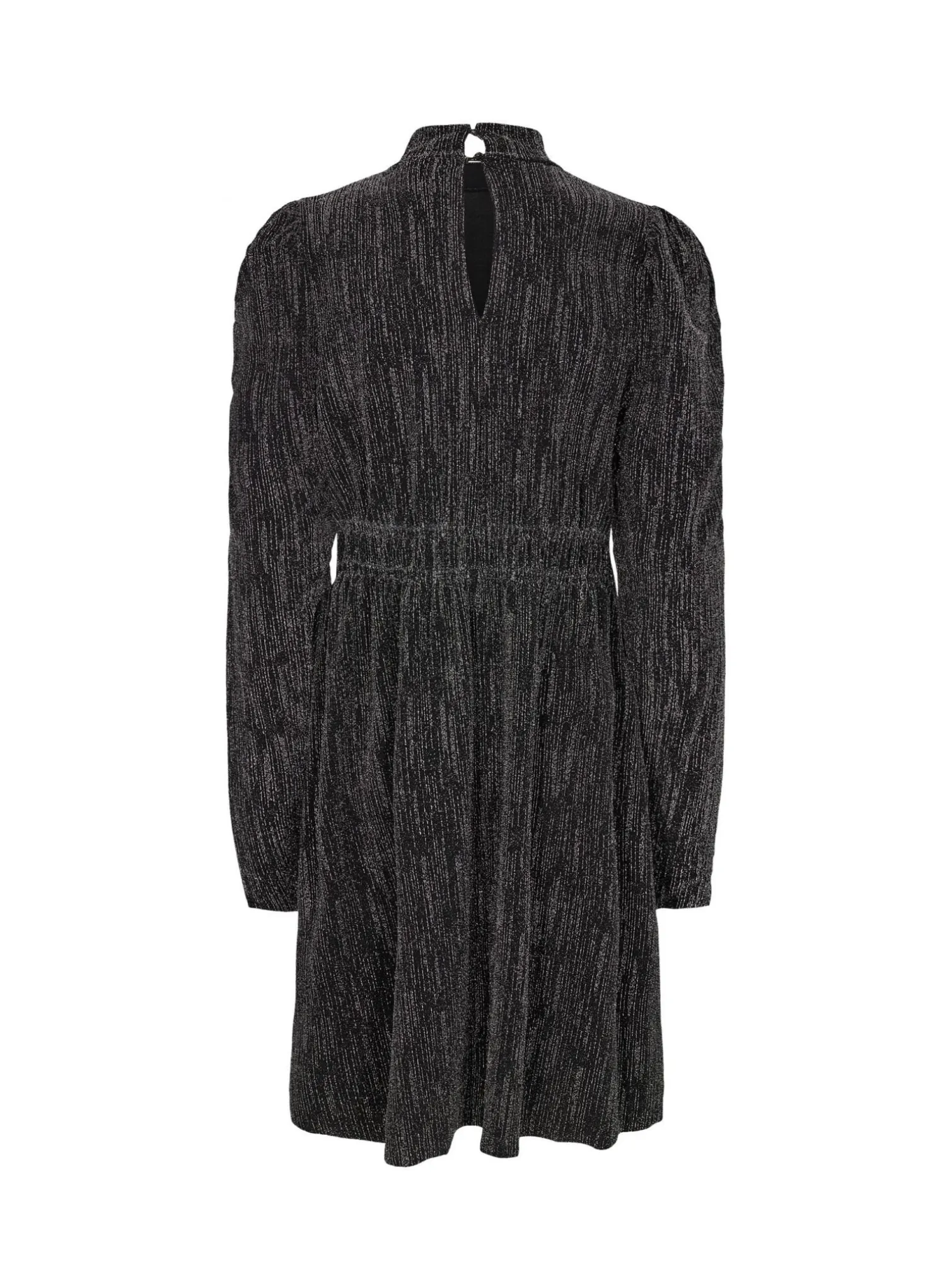 Dress Warren from Leveté Room. A wonderful dress with glittering details. Puffed shoulders and marked waist in elastic, which creates a nice silhouette. High neck that closes with two buttons at the back. Style with a pair of boots for a festive look!